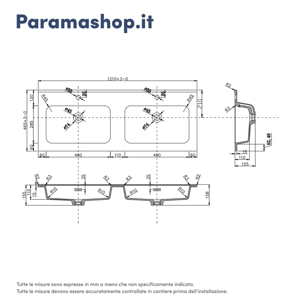 • Doppia vasca con dimensioni 49x28,5x11cm