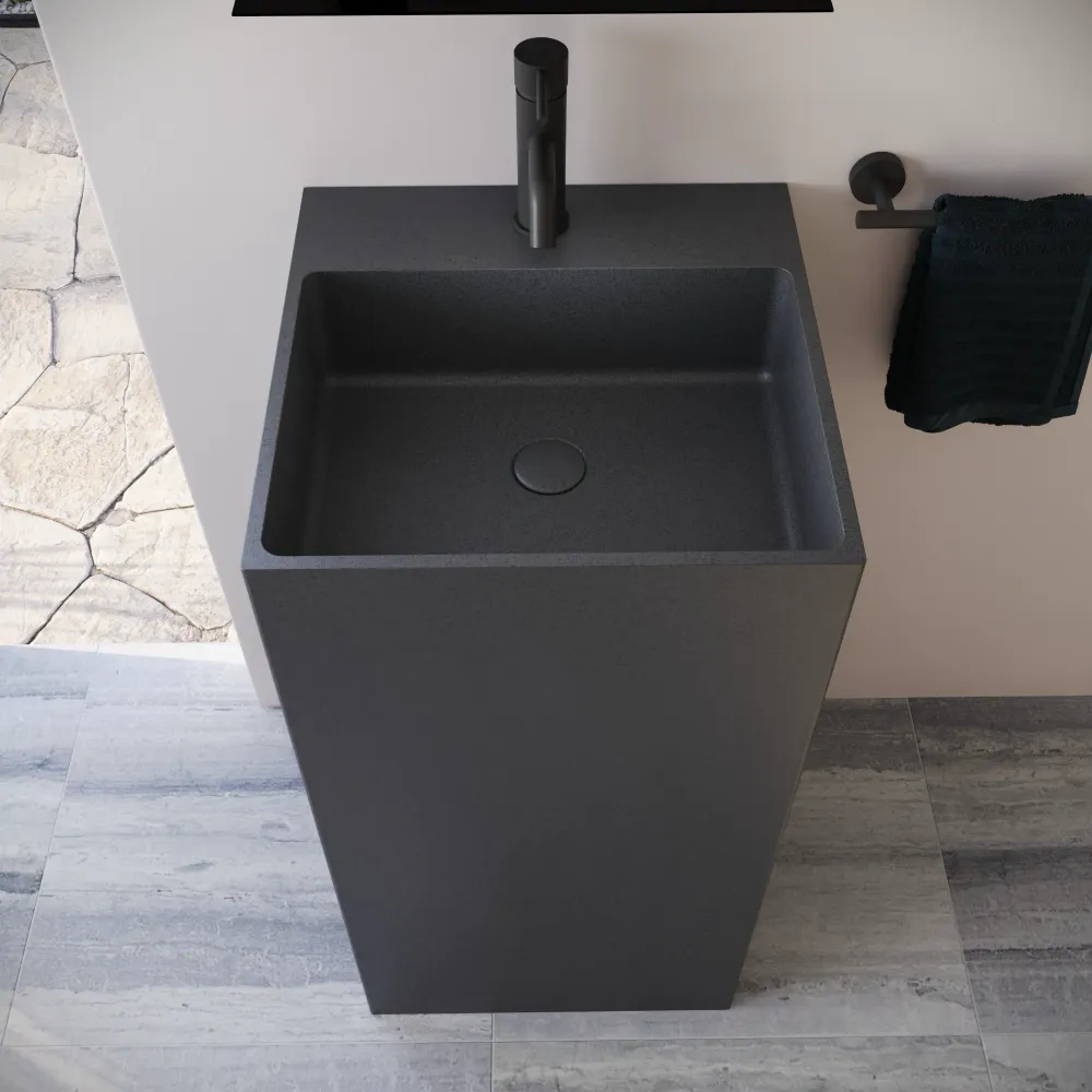 Lavabo freestanding quadrato 45x45x90cm in microcemento nero | Flores