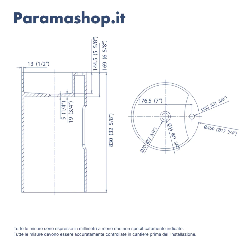 La sua forma tonda e la struttura slanciata di 83 cm di altezza lo rendono un punto focale di stile, perfetto per bagni dal gusto moderno o industrial. Il microcemento assicura resistenza, impermeabilità e facilità di pulizia, mantenendo nel tempo la sua bellezza naturale.