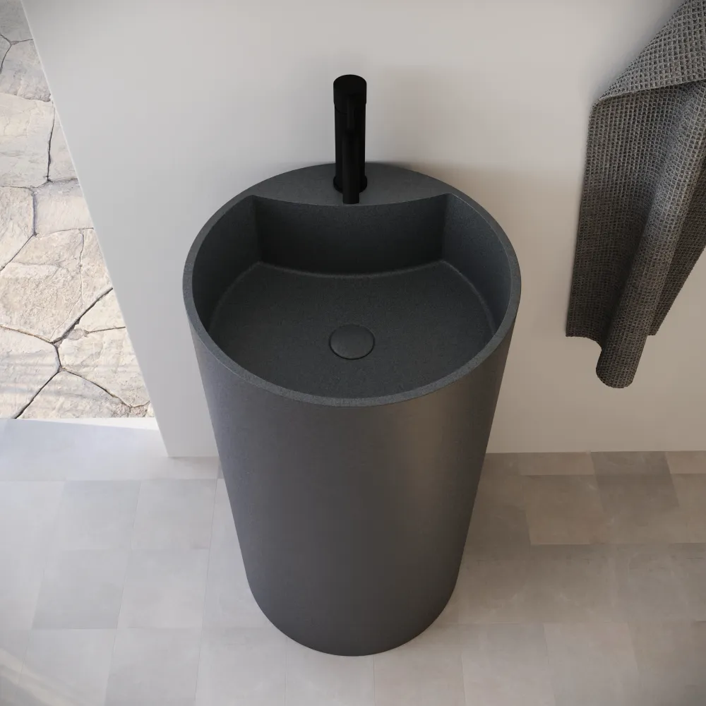 Lavabo freestanding tondo 45x83 cm in micrcocemento nero | Coral