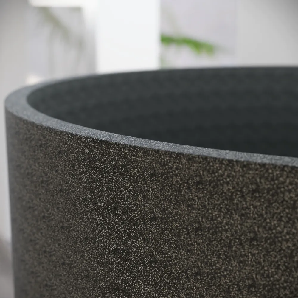 Il lavabo freestanding Coral rappresenta la perfetta sintesi tra design scultoreo e funzionalità contemporanea. Realizzato in microcemento nero con finitura opaca, si distingue per la sua presenza elegante e materica, capace di trasformare il bagno in un ambiente raffinato e moderno.