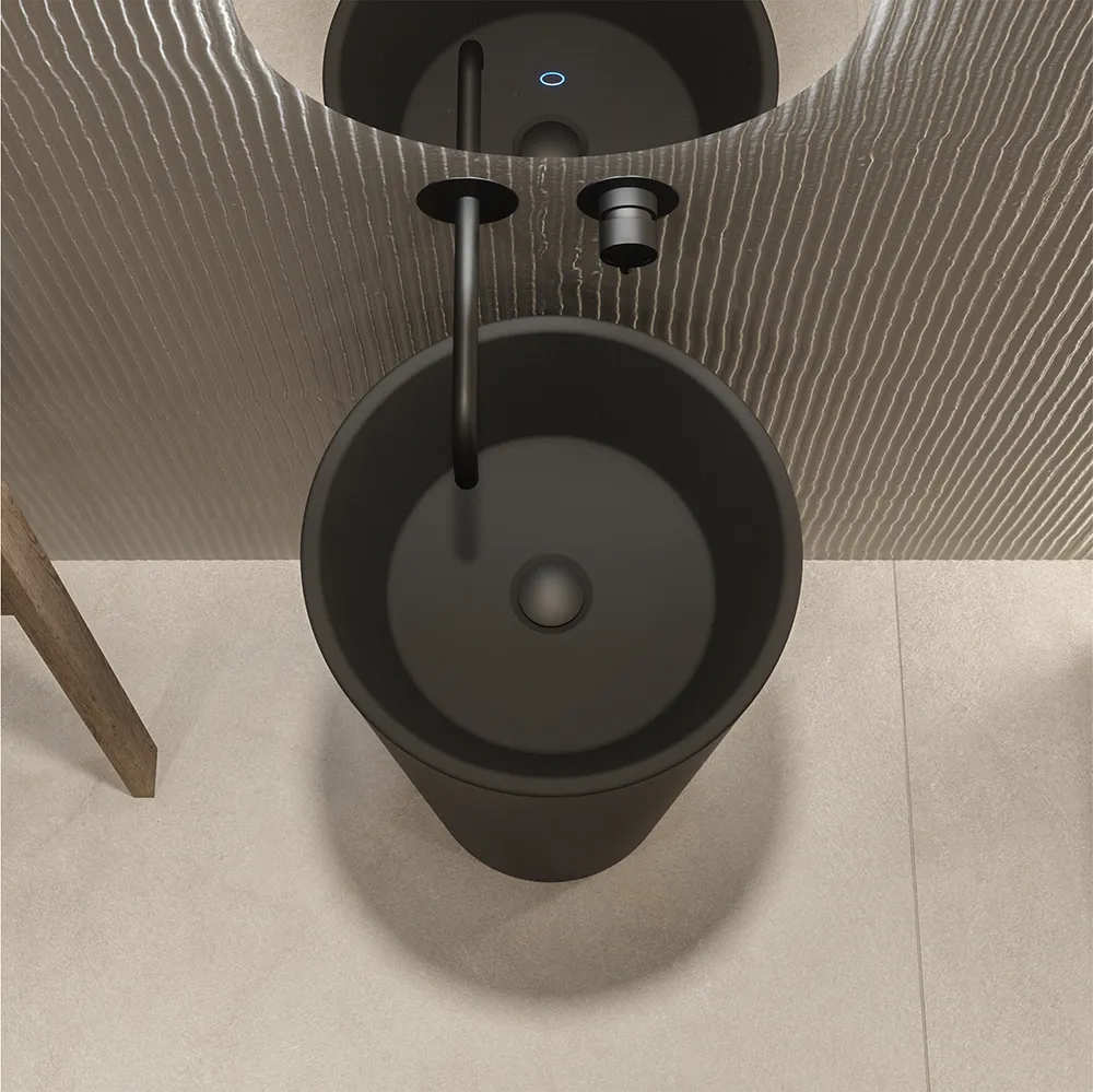 Lavabo freestanding tondo diam. 40cm in ceramica nero opaco | Egeo