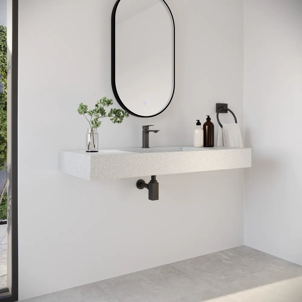 Il lavabo sospeso Tasman è pensato per chi cerca un elemento architettonico d’arredo capace di coniugare forma, materia e funzionalità. La sua installazione a muro crea un effetto sospeso di grande leggerezza visiva, donando al bagno un aspetto ordinato e luminoso.