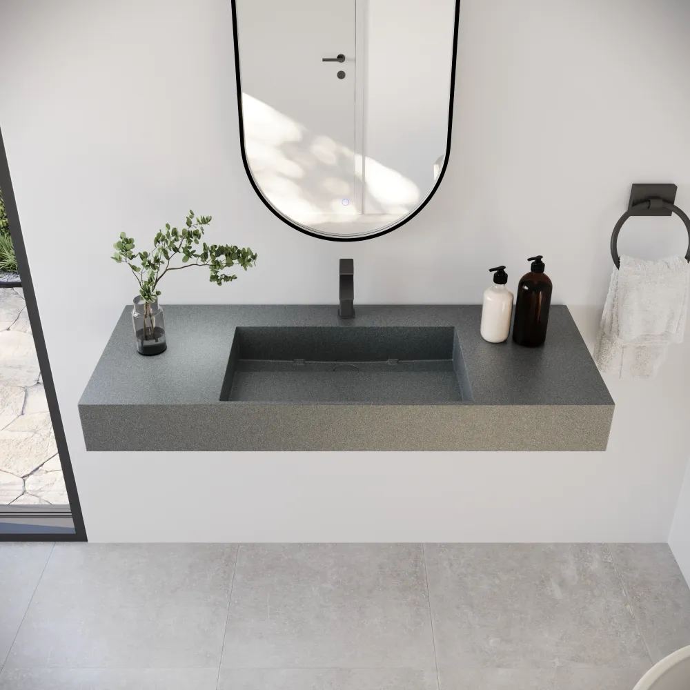 Lavabo sospeso a muro rettangolare 120x48x13 cm in microcemento grigio | Tasman