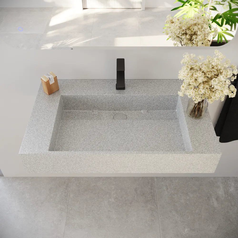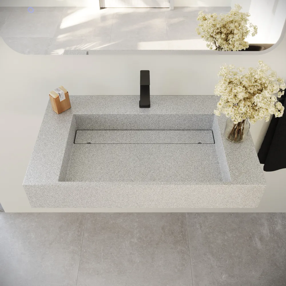 Lavabo sospeso a muro rettangolare 90x48x13 cm in microcemento beige | Tasman