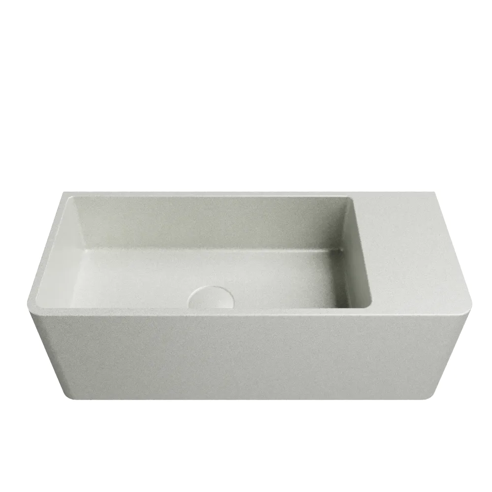 Lavabo sospeso a muro rettangolare in microcemento 55x23x20 cm beige foro a destra | Kanas