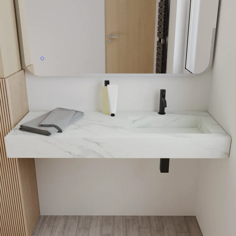 Lavabo sospeso con vasca a destra in hpl 120cm calacatta bianco | Ledro