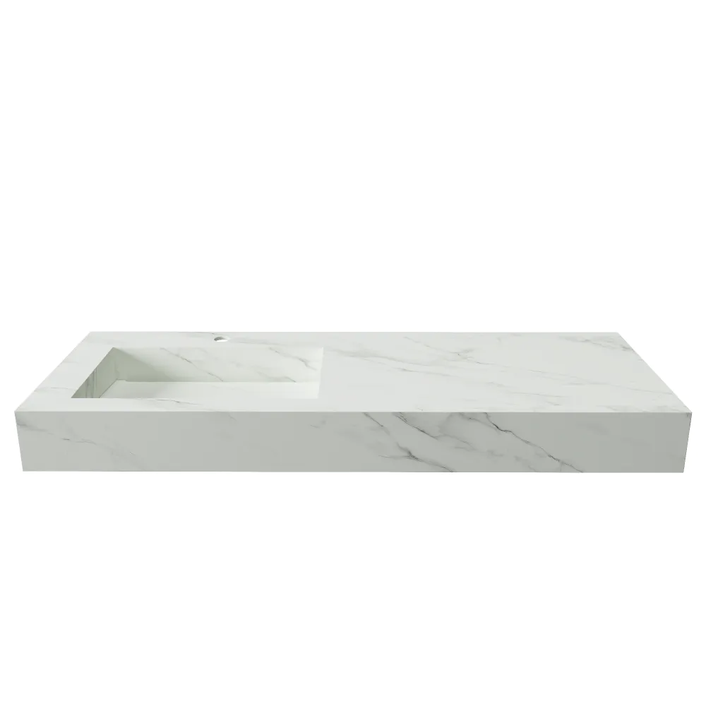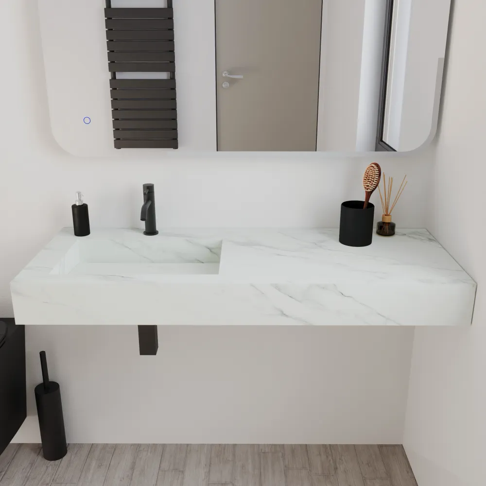 Lavabo sospeso con vasca a sinistra in hpl 120cm calacatta bianco | Ledro