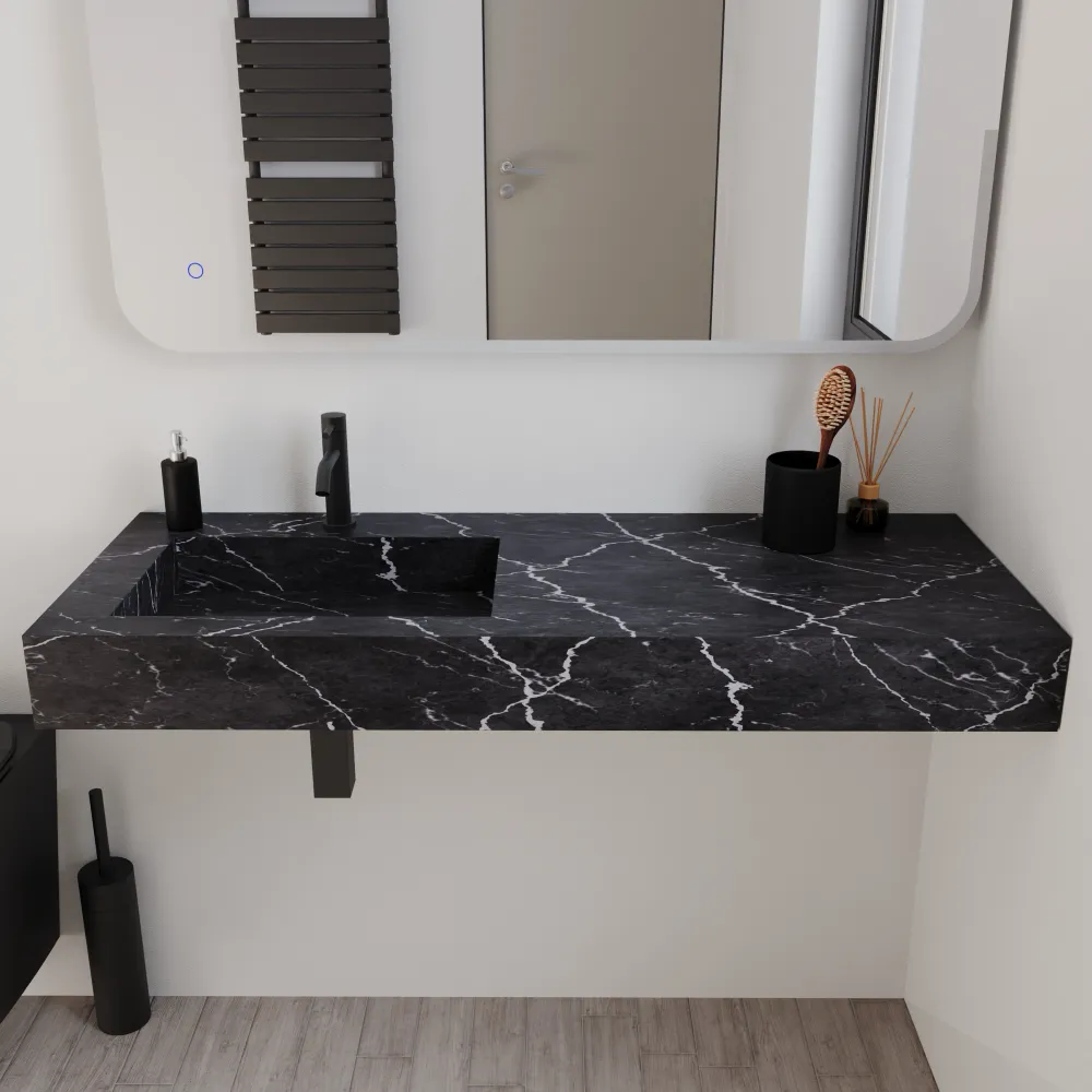 Lavabo sospeso con vasca a sinistra in hpl 120cm effetto marmo scuro | Ledro
