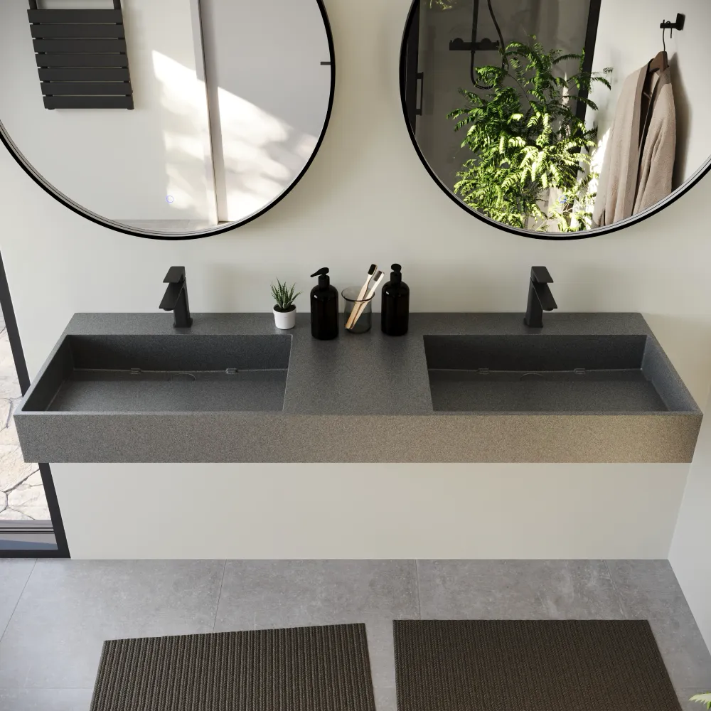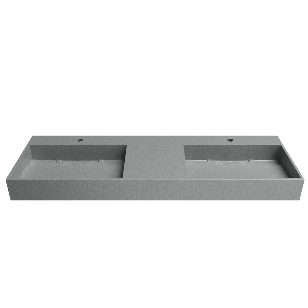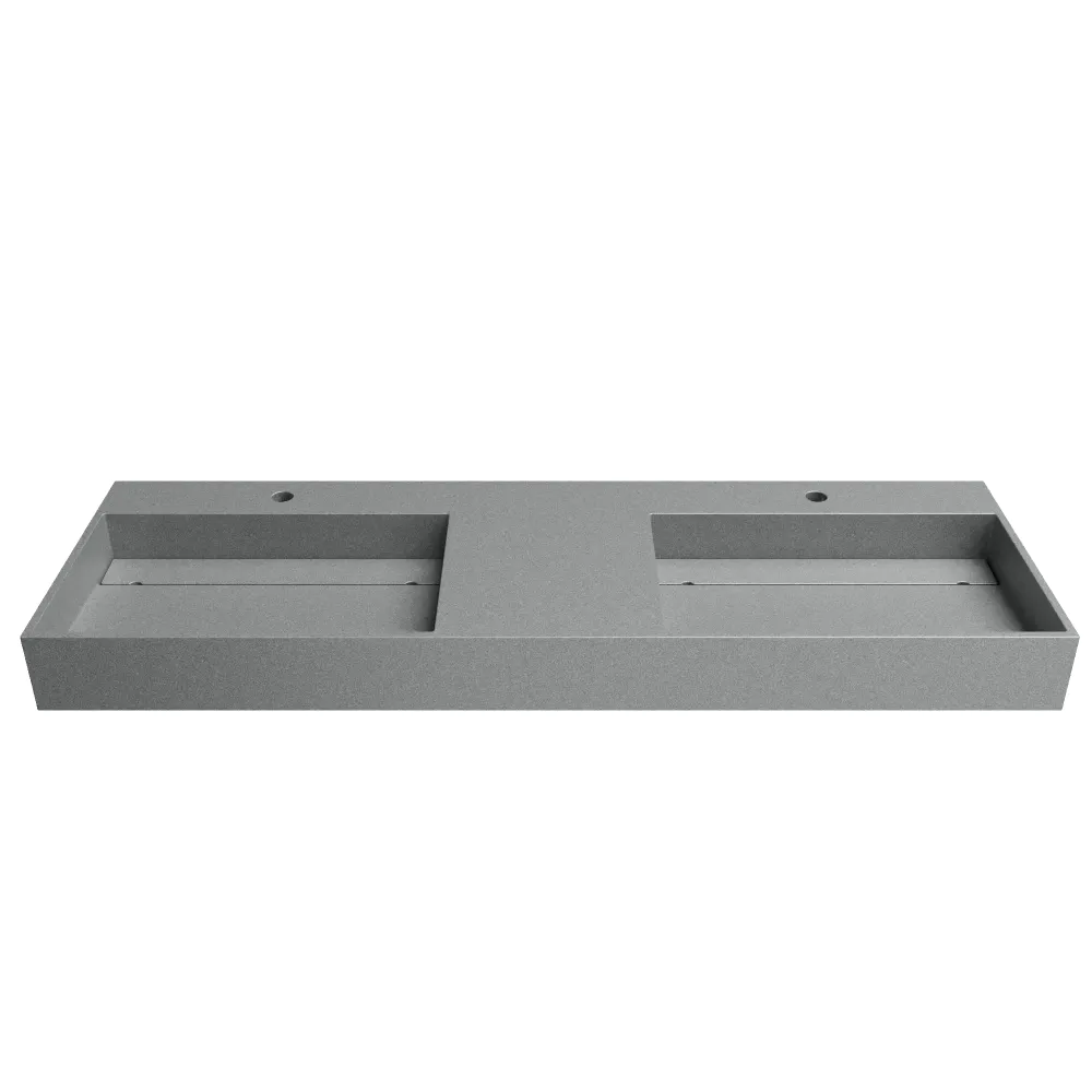 Lavabo sospeso doppia vasca a muro rettangolare 150x48x13 cm in microcemento grigio | Tasman