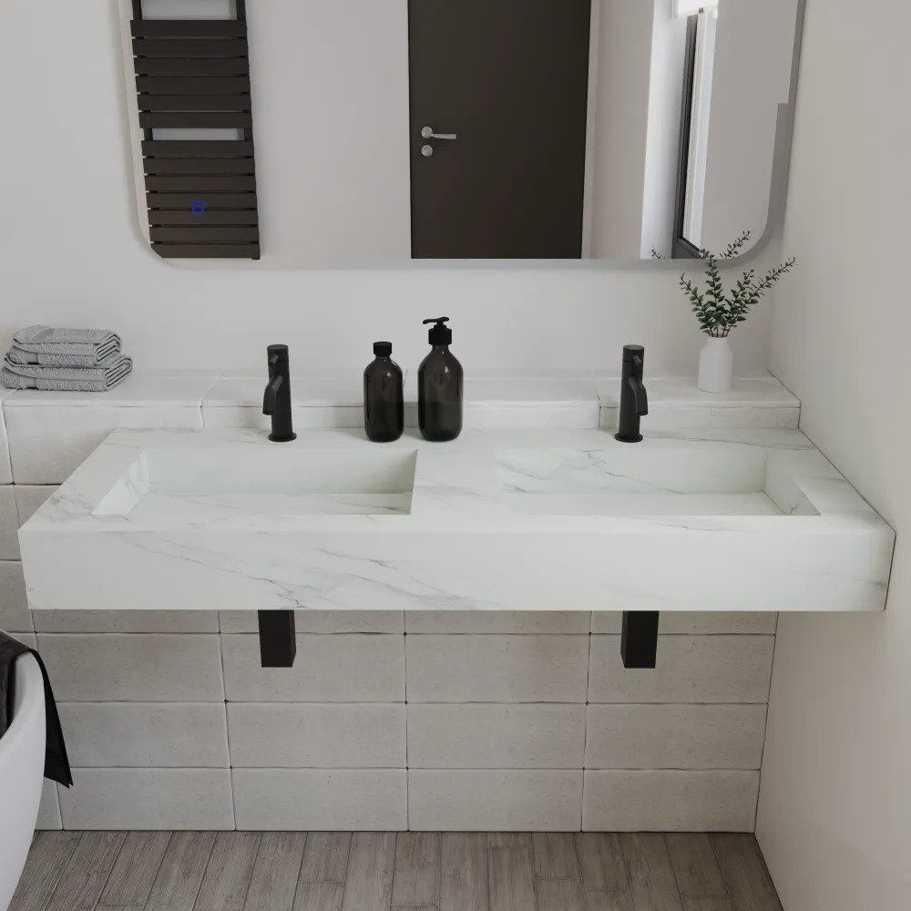 Lavabo sospeso doppia vasca in hpl 120cm calacatta bianco | Ledro