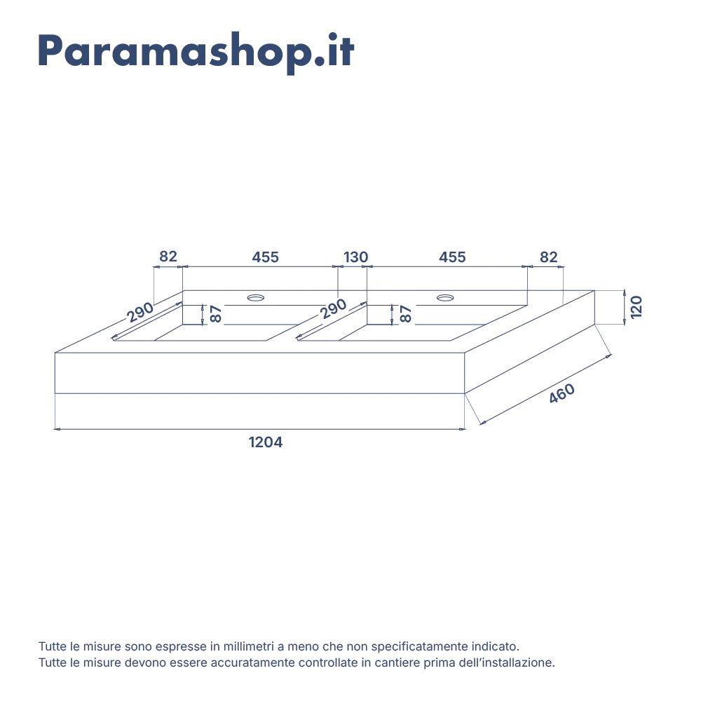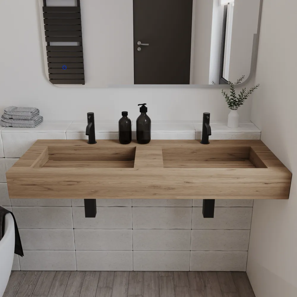 Lavabo sospeso doppia vasca in hpl 120cm rovere miele | Ledro
