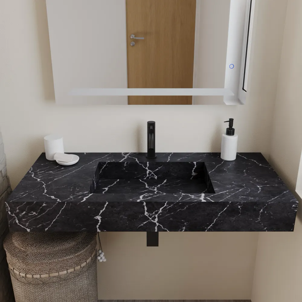 Lavabo sospeso in hpl 100cm effetto marmo scuro | Ledro