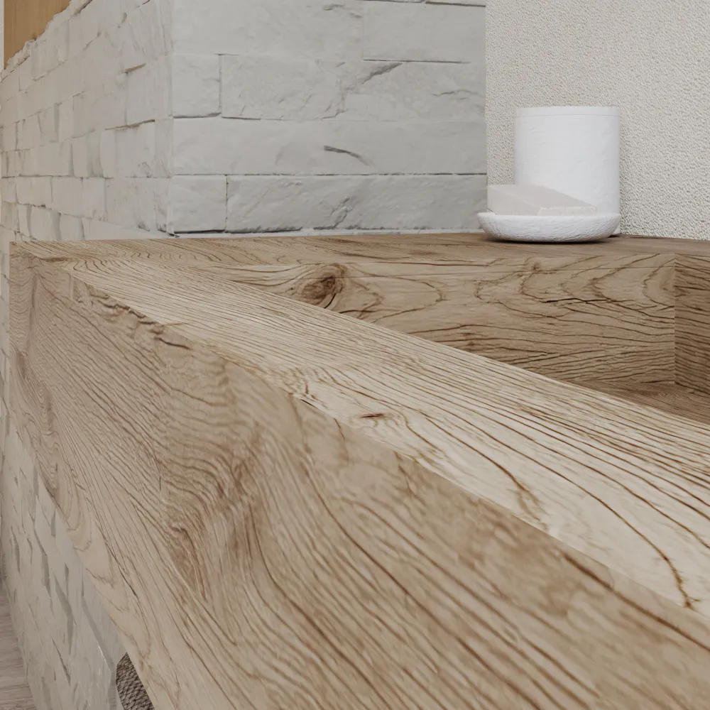 Il lavabo integrato dà vita a un piano continuo e senza giunture, ideale per bagni contemporanei o minimalisti. Con dimensioni interne della vasca di 29 x 45,5 x 8,7 cm – ergonomiche e spaziose – si pulisce in un attimo, resiste a batteri e umidità grazie all'HPL leggerissimo ma indistruttibile. Perfetto per installazioni sospese che amplificano luminosità e spazio, senza compromessi sullo stile.