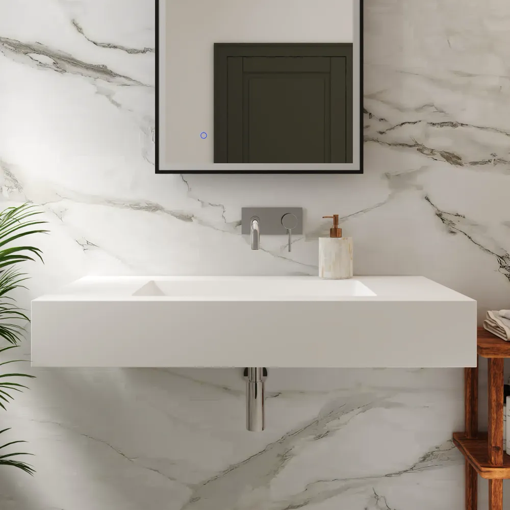 Lavabo sospeso in marmoresina 120cm bianco opaco | Koro