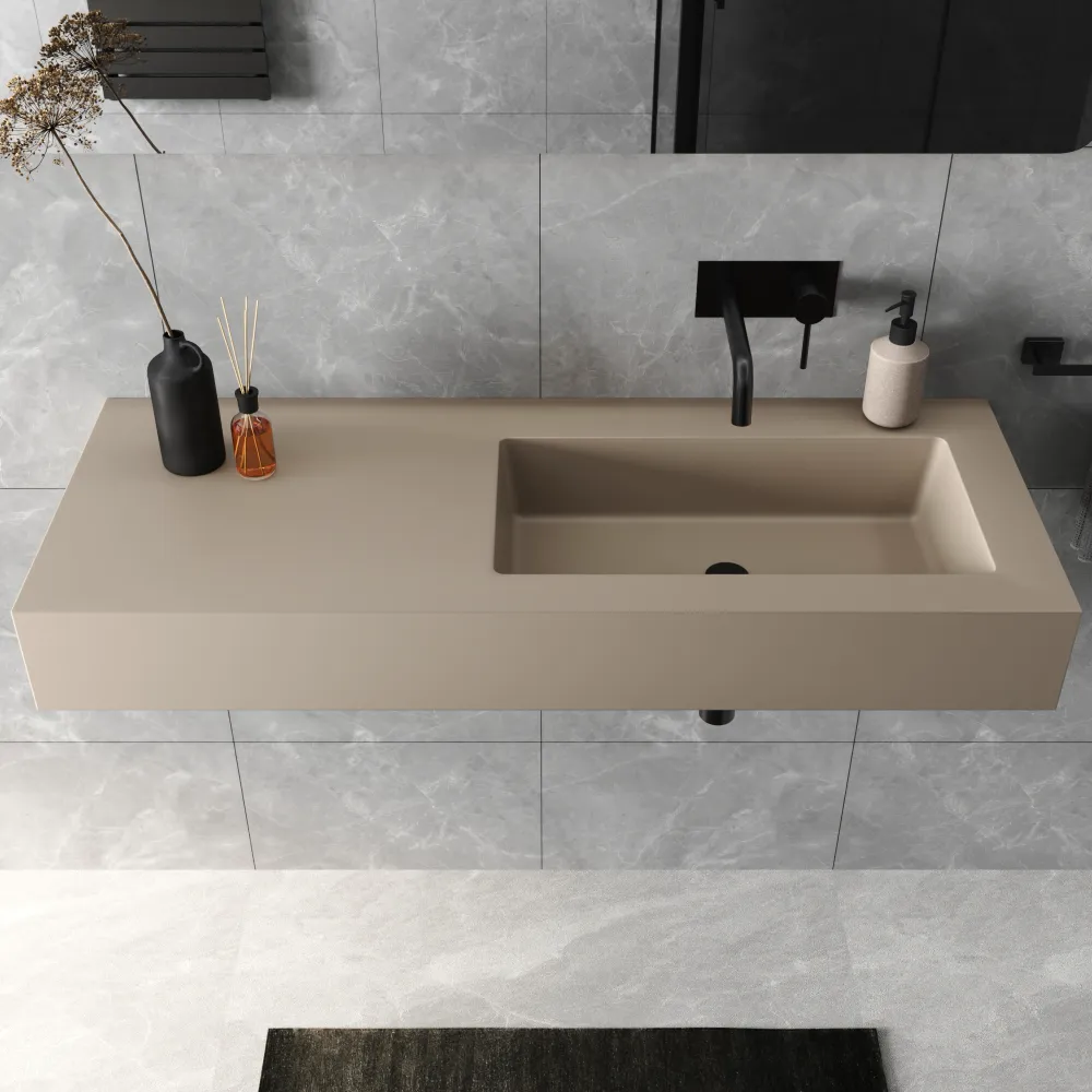 Lavabo sospeso in marmoresina 120cm vasca a destra beige opaco | Koro