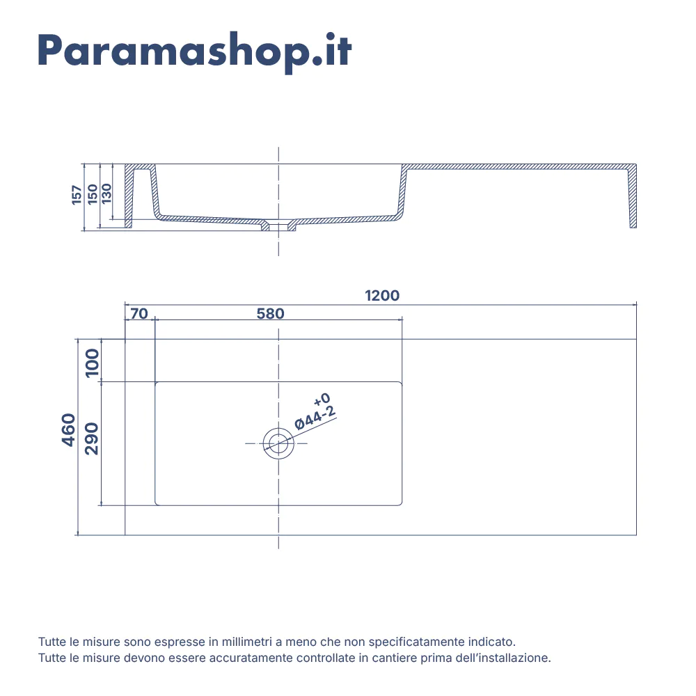 - Foro rubinetto: Preforato (segni guida sul retro per eventuale foratura)