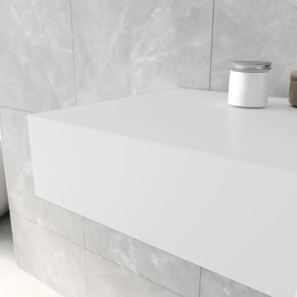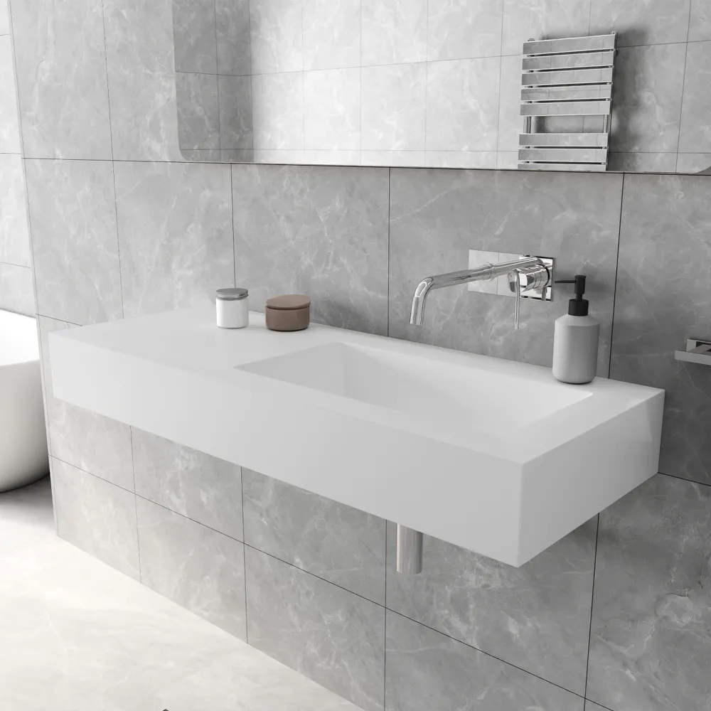 Lavabo sospeso in marmoresina 120cm vasca a destra bianco opaco | Koro