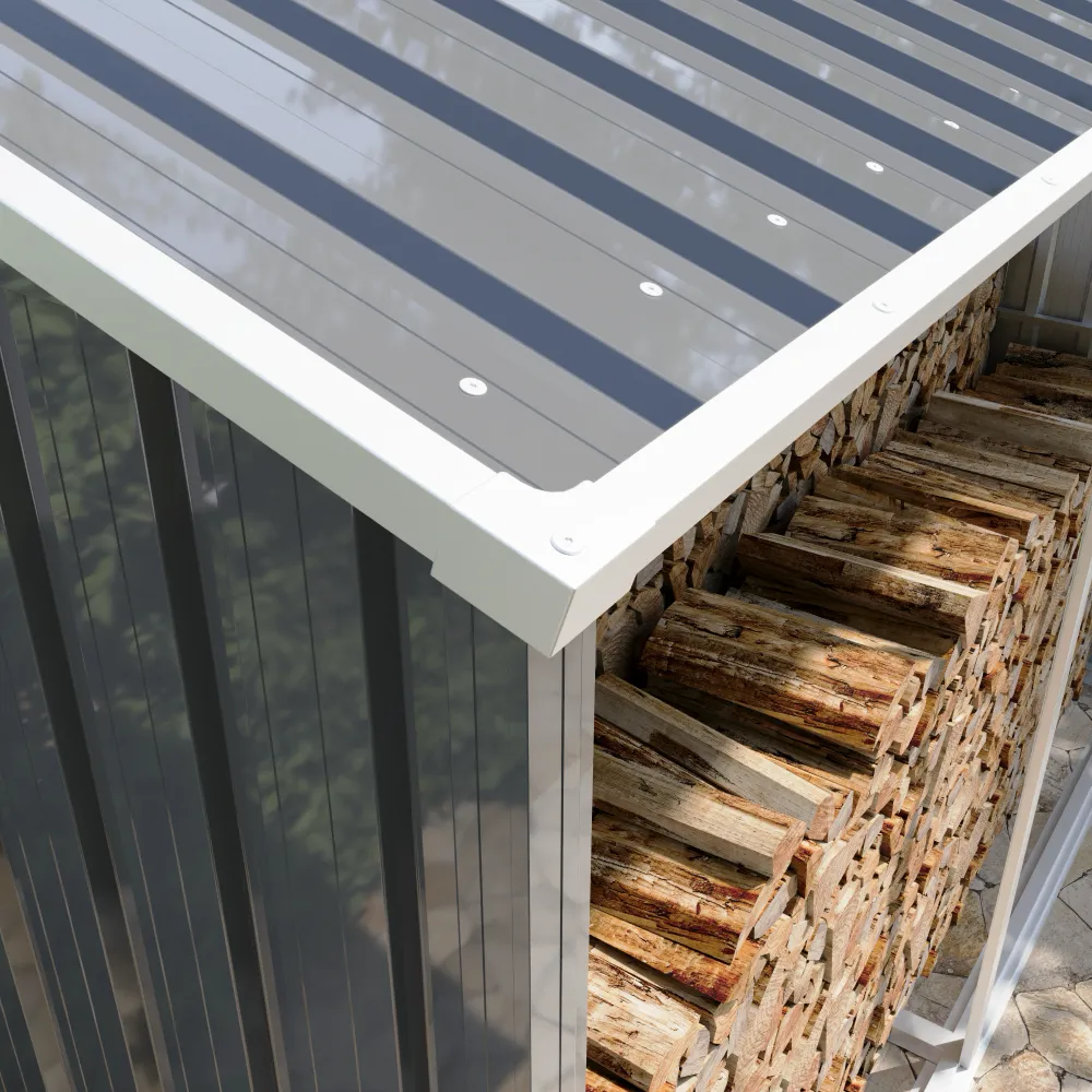 Il tetto leggermente spiovente facilita il rapido deflusso dell'acqua piovana e della neve. Inoltre, il design aperto garantisce un'eccellente circolazione dell'aria, fondamentale per mantenere la legna asciutta e prevenire la formazione di muffa o umidità.