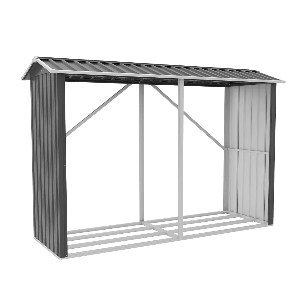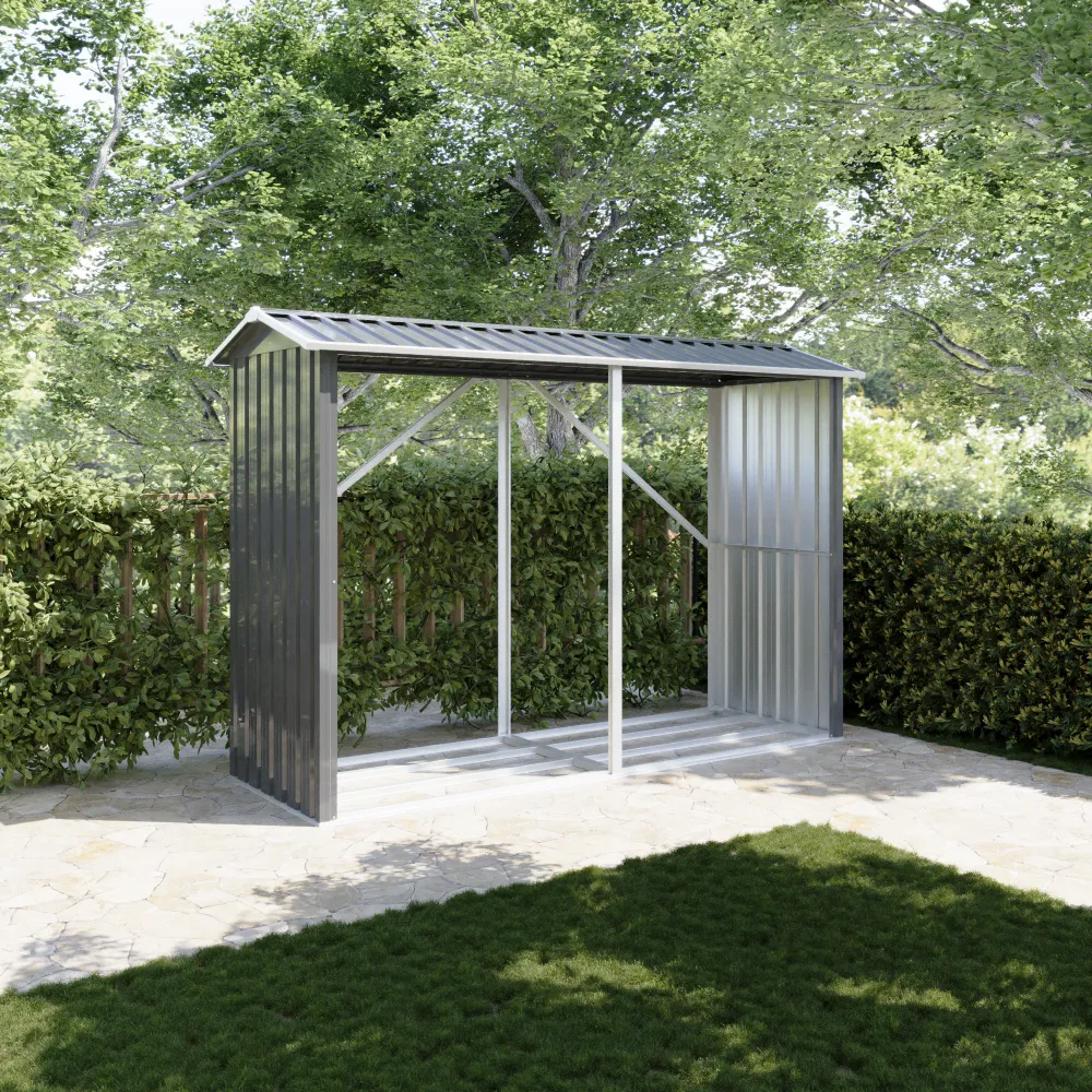 Legnaia da esterno in acciaio zincato nero 238x87x160cm con tetto spiovente