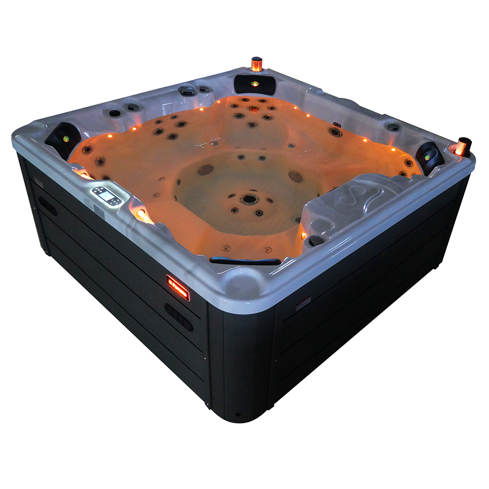 Questa modello presenta una distribuzione intelligente degli spazi, con 7 posti a sedere, offrendo la massima comodità. I 54 getti d'acqua e 8 getti ad aria personalizzabili ti coccolano con un massaggio su misura, creando un'esperienza di idromassaggio coinvolgente e completa.