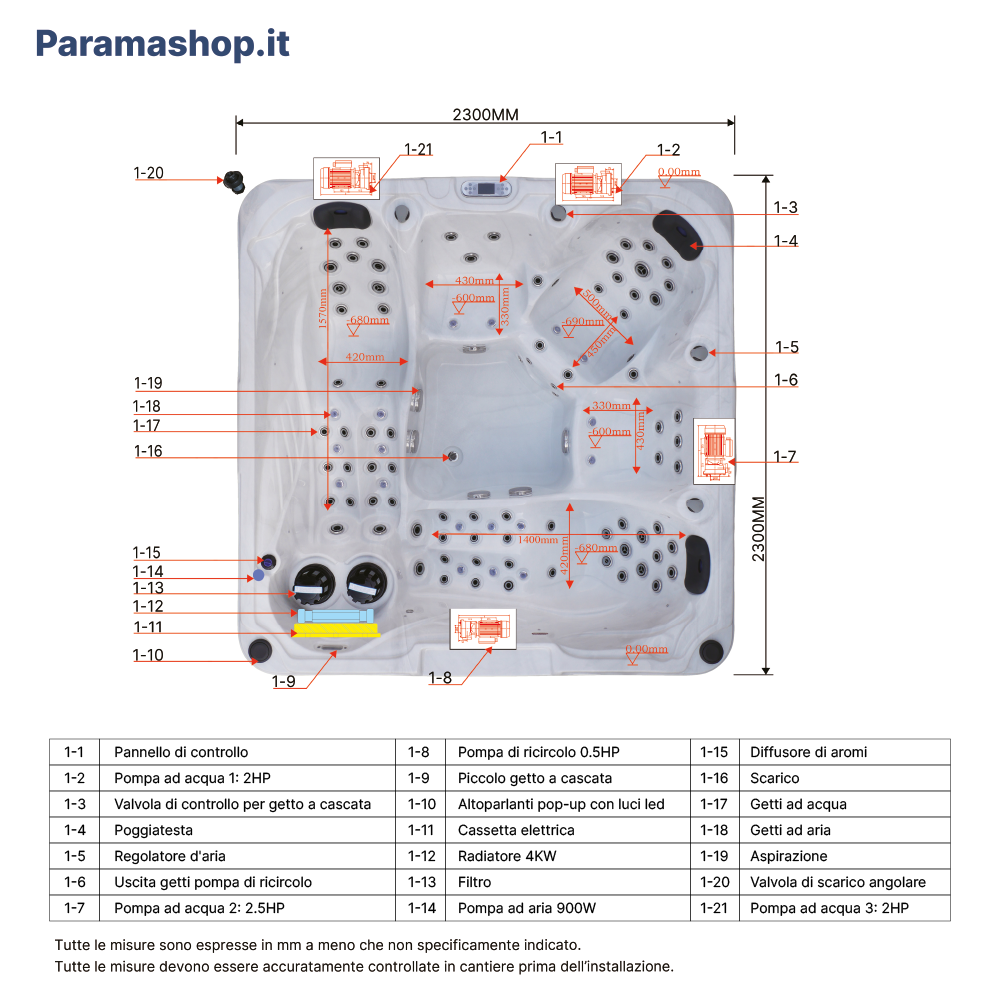 Esplora il paradiso del relax con la Minipiscina vasca idromassaggio Modello Erie, un'opera d'arte concepita per regalarti un'esperienza di benessere senza pari nel tuo spazio esterno. Le sue dimensioni di 230x230x96 cm la rendono perfetta per accogliere comodamente fino a 5 persone, offrendo momenti di puro relax ideali per serate romantiche o riunioni con amici e familiari.
