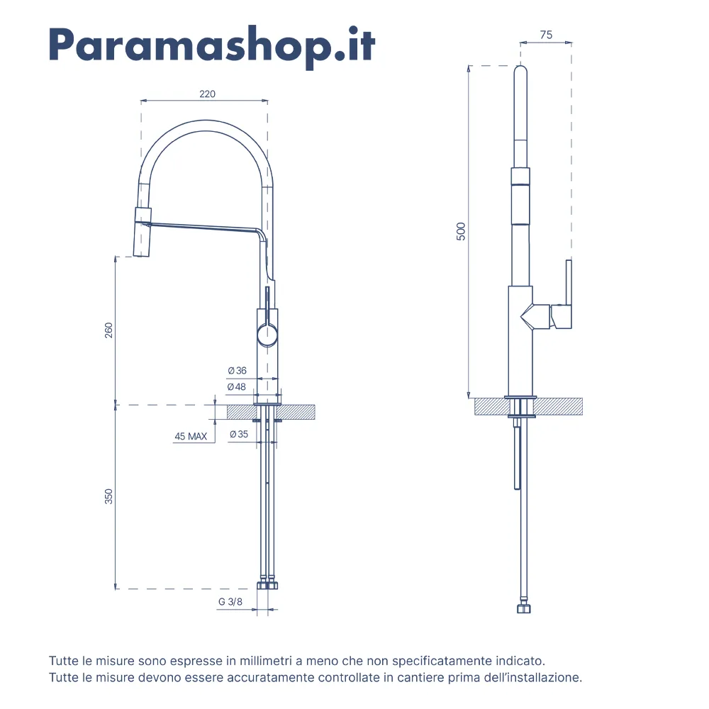Il collegamento all’impianto idraulico è reso pratico dall’attacco standard 3/8" G, compatibile con la maggior parte degli impianti domestici.