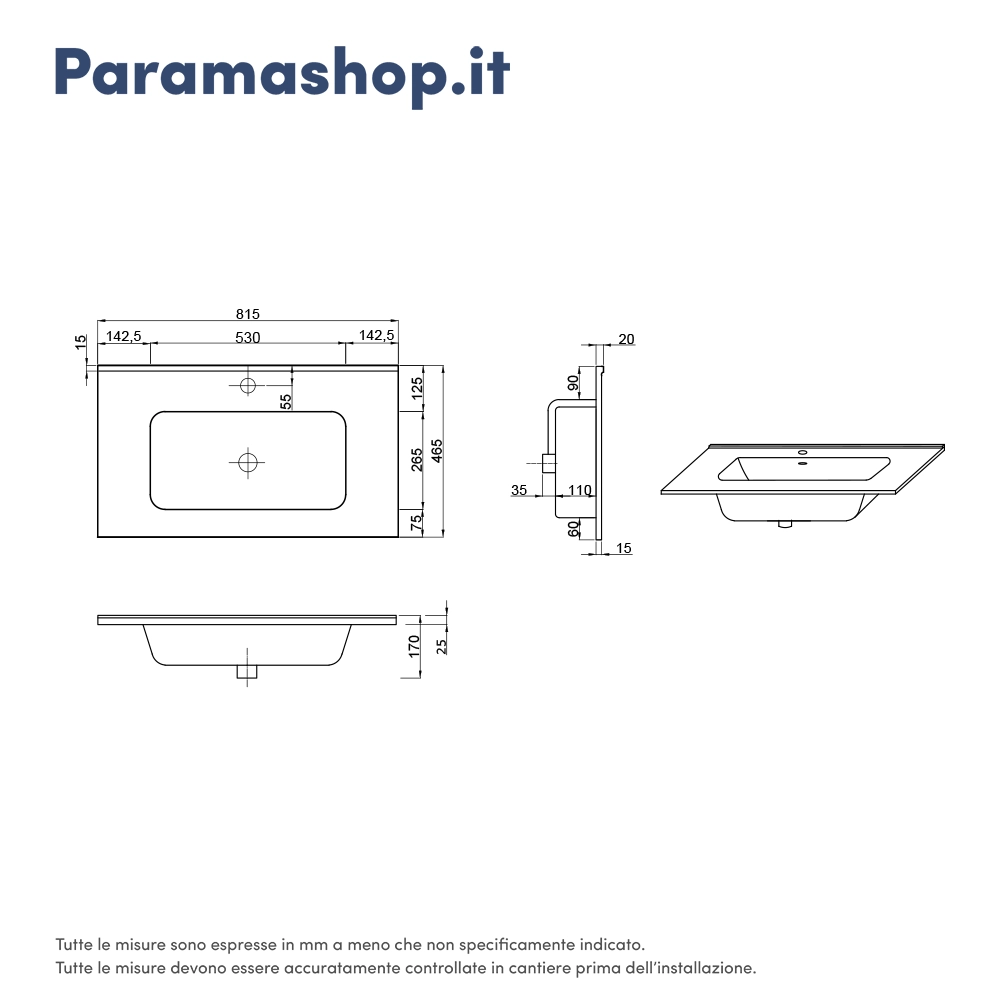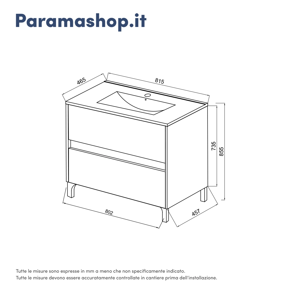 La rubinetteria e lo specchio non sono inclusi nella composizione, ma potete trovarli nella nostra categoria dedicata.