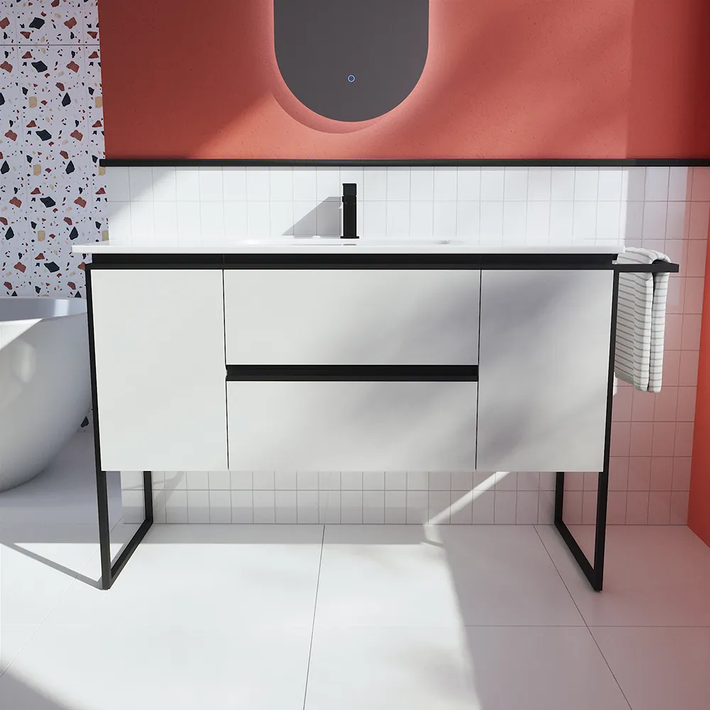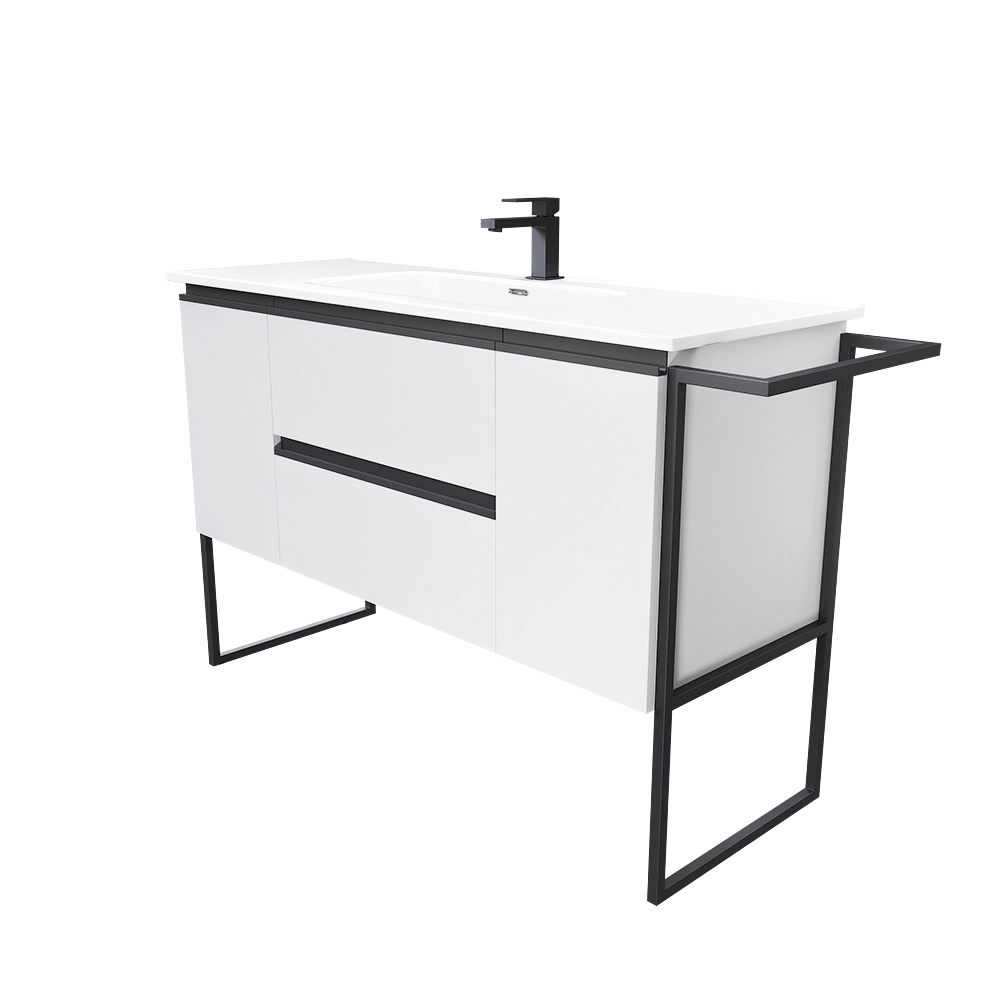 Mobile bagno a terra 120cm bianco lucido con lavabo in ceramica | Sapo