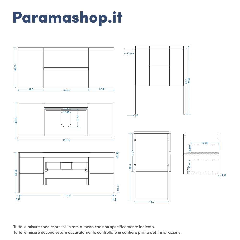 Il corpo del mobile è in legno MDF di alta qualità di colore bianco lucido, dotato di due ante battenti e due cassetti con sistema di chiusura ammortizzata (soft-close) per una chiusura silenziosa, senza sforzi e che preservi la vita utile del mobile.