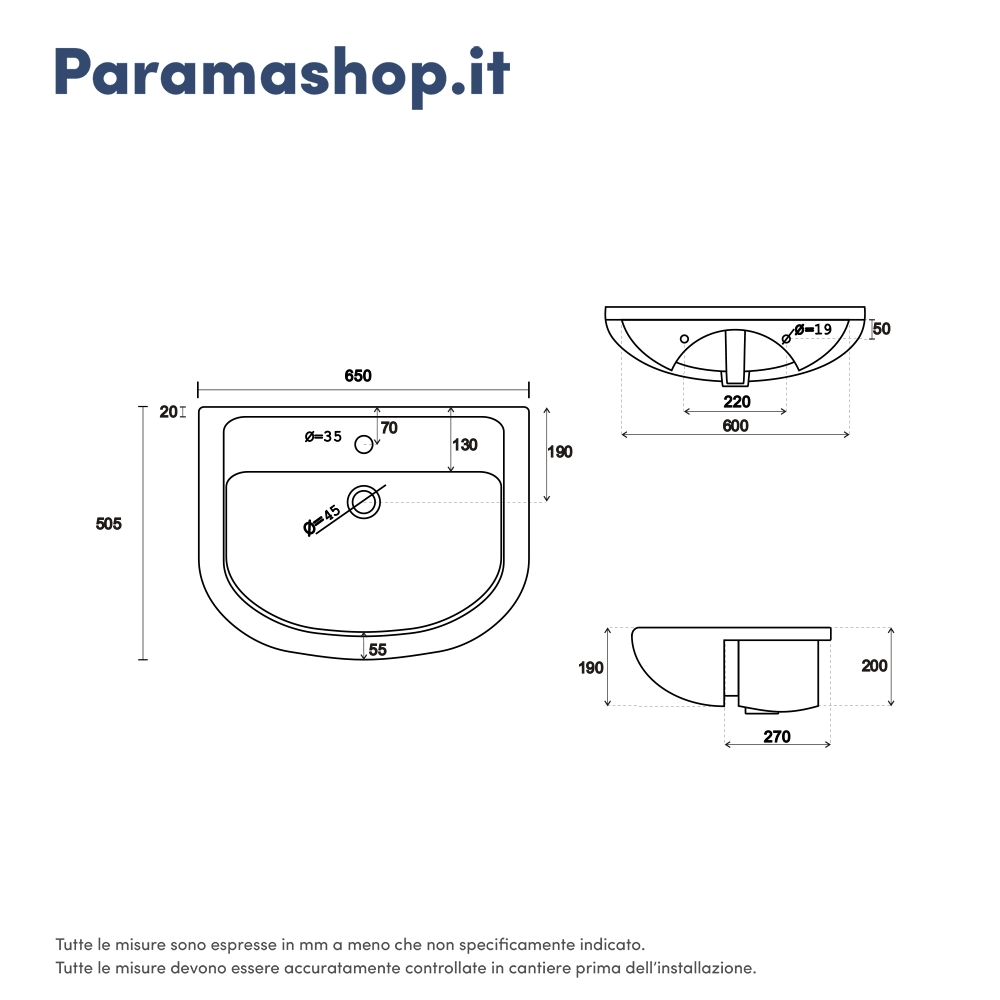 Si prega di notare che rubinetto, piletta di scarico e sifone per lavabo non sono incluse nella confezione del prodotto ma sono acquistabili separatamente nelle apposite sezioni dedicate.
