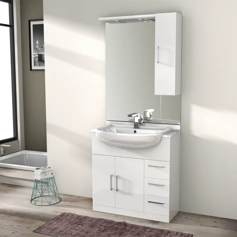 Mobile bagno a terra 80 cm bianco lucido con lavabo semi incasso e specchio | Play