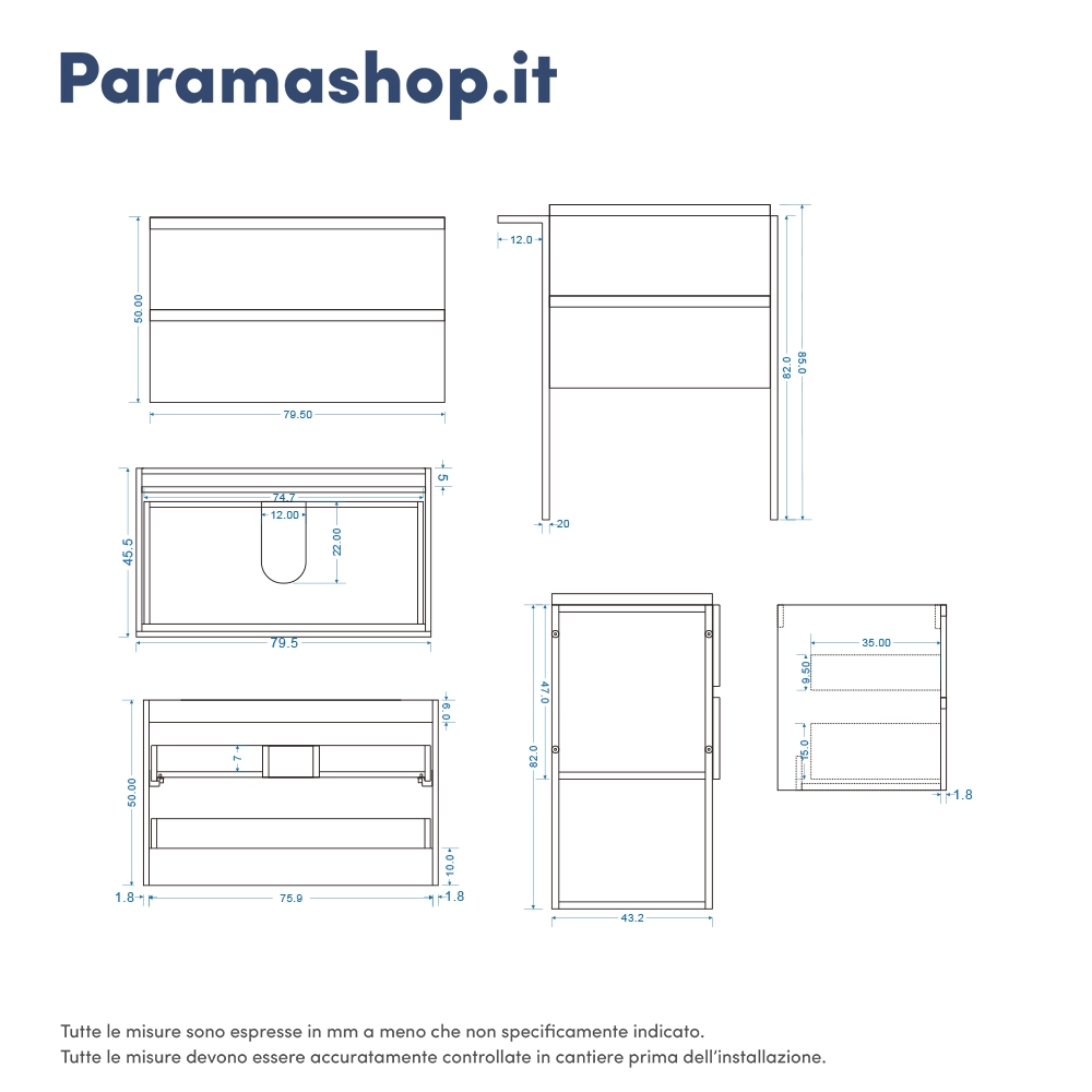 Il corpo del mobile è in legno MDF di alta qualità di colore bianco lucido, dotato di due cassetti con sistema di chiusura ammortizzata (soft-close) per una chiusura silenziosa, senza sforzi e che preservi la vita utile del mobile.