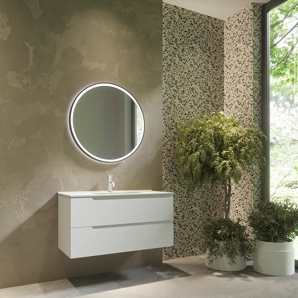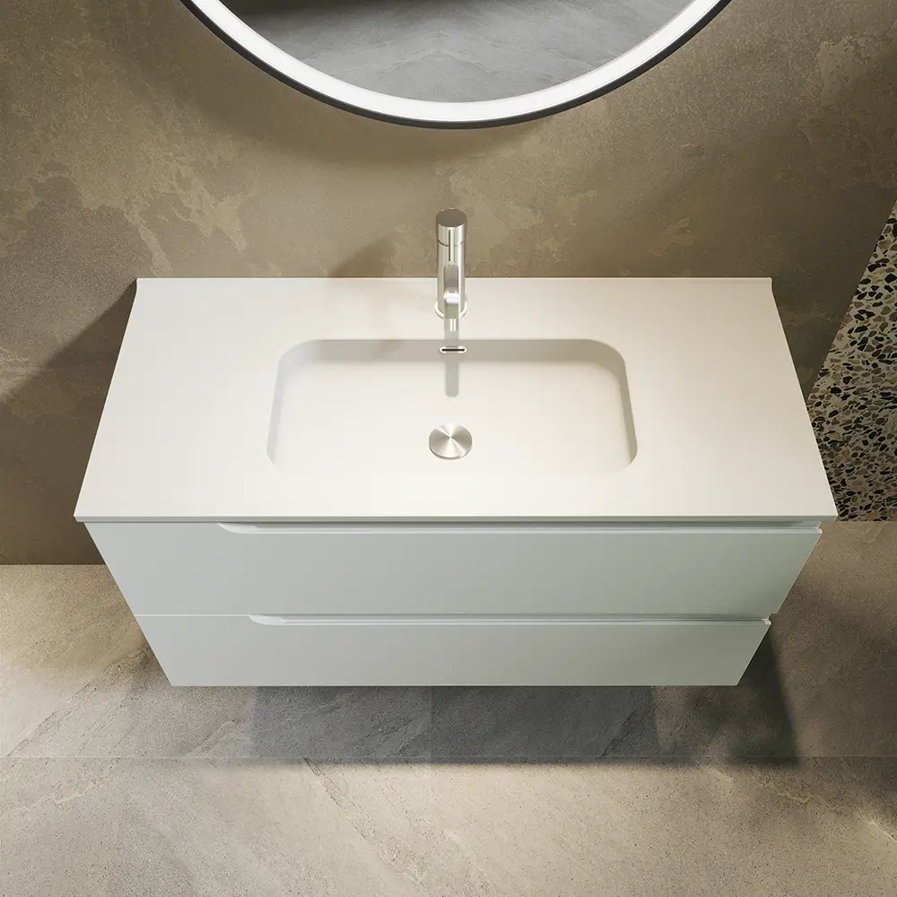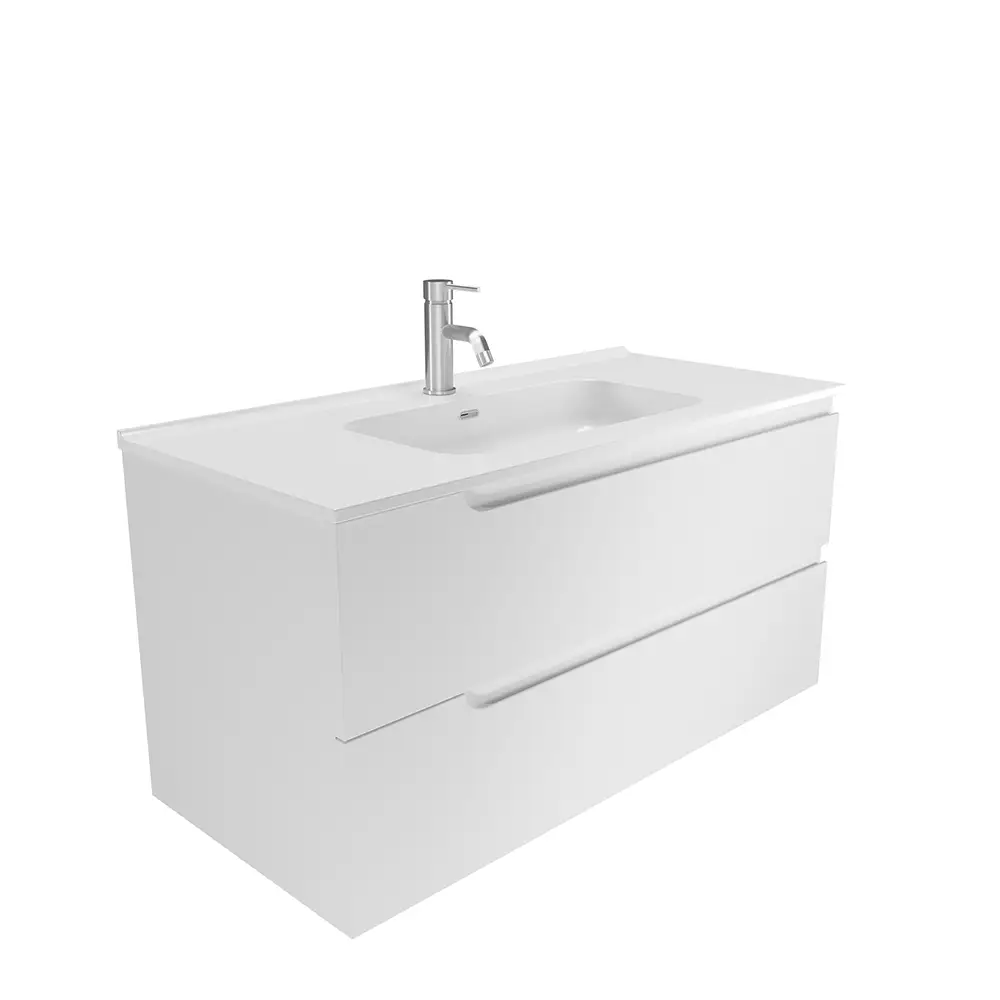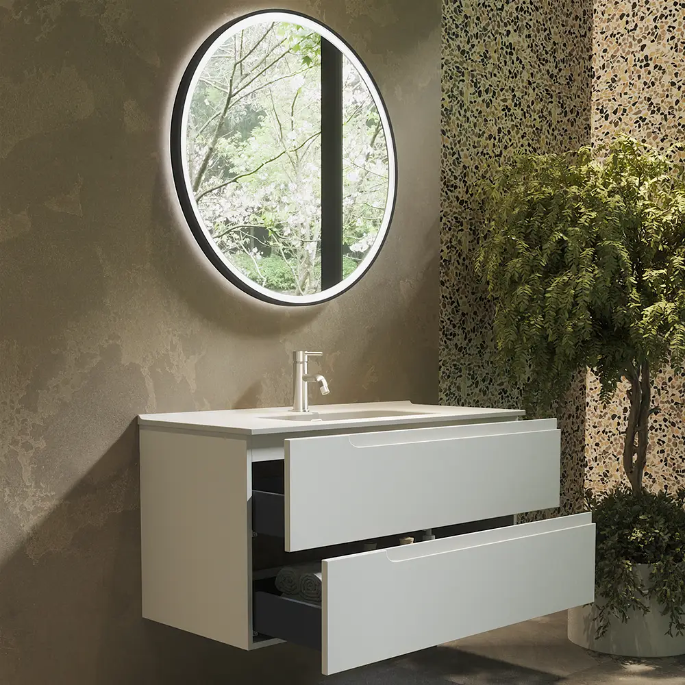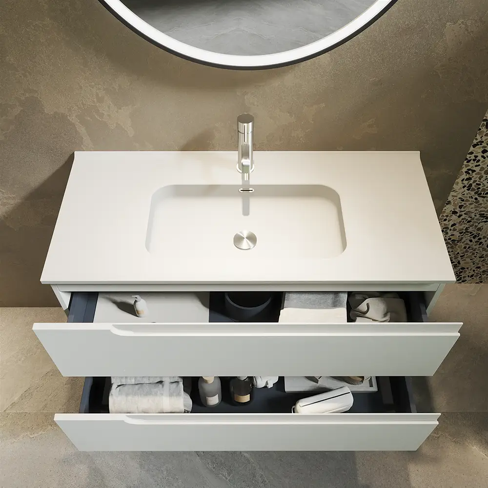 Mobile bagno sospeso 100 cm due cassetti bianco opaco con lavabo | Moor