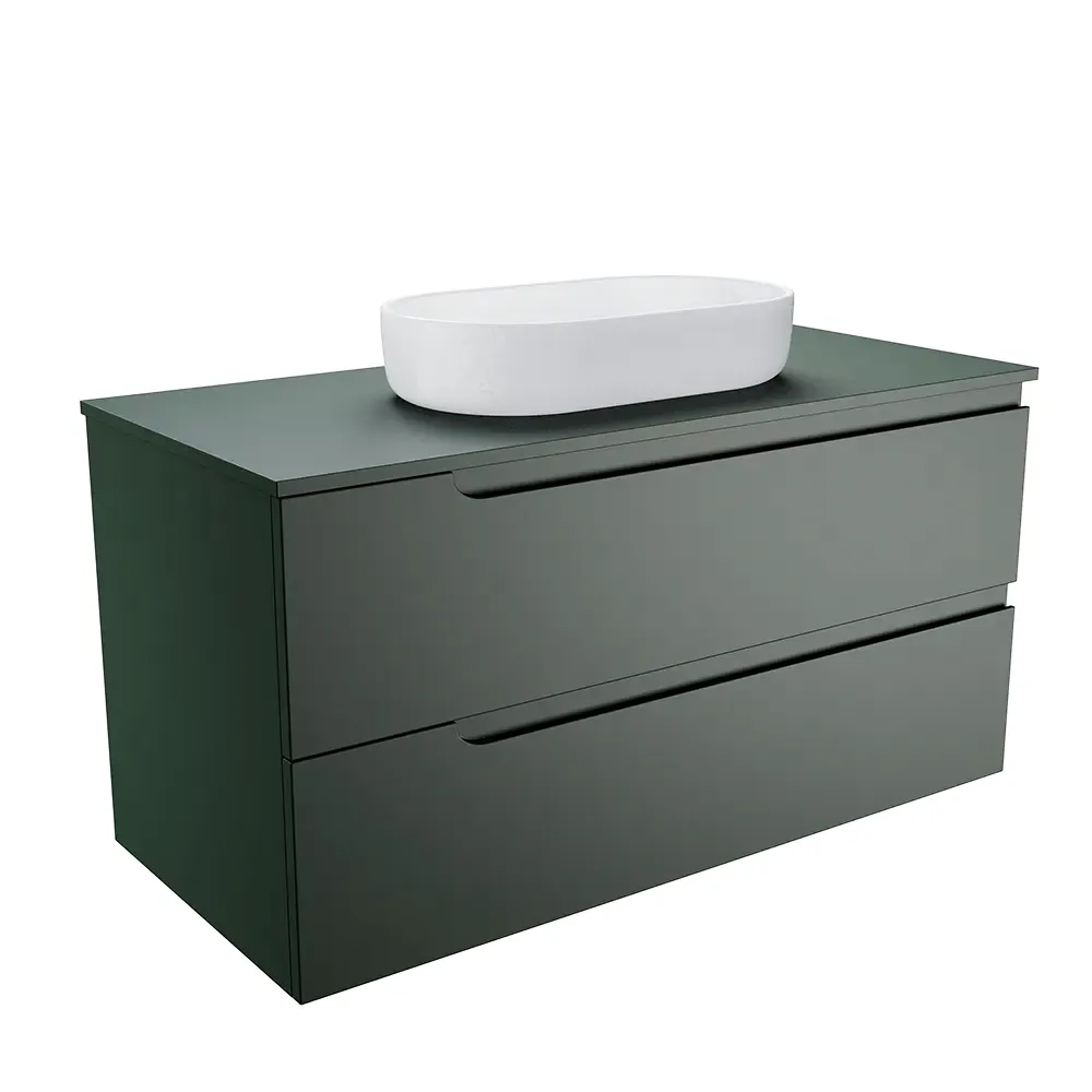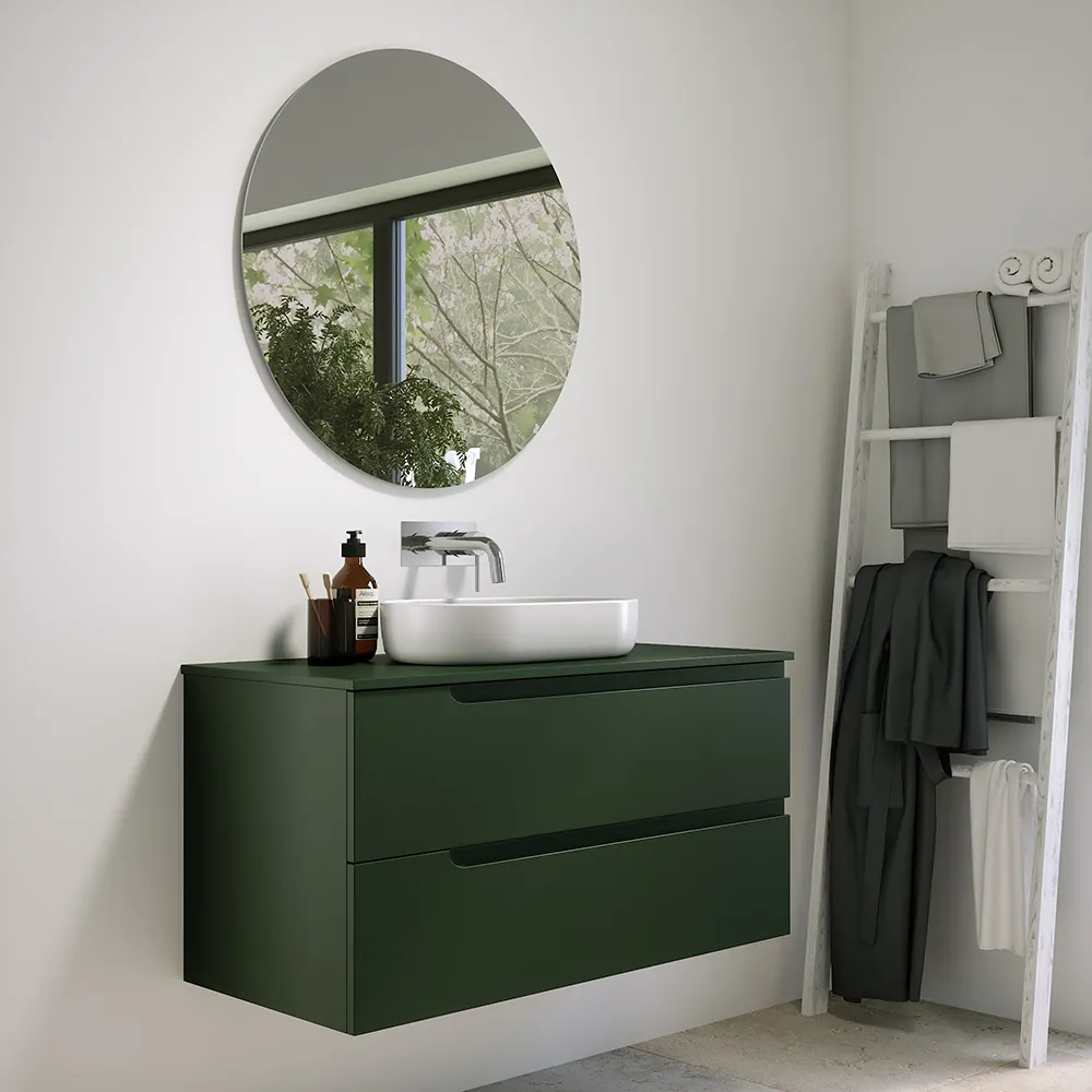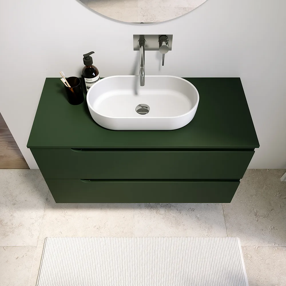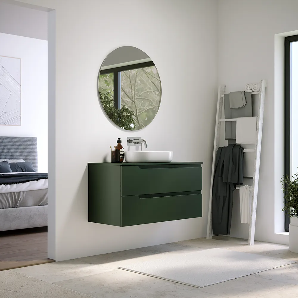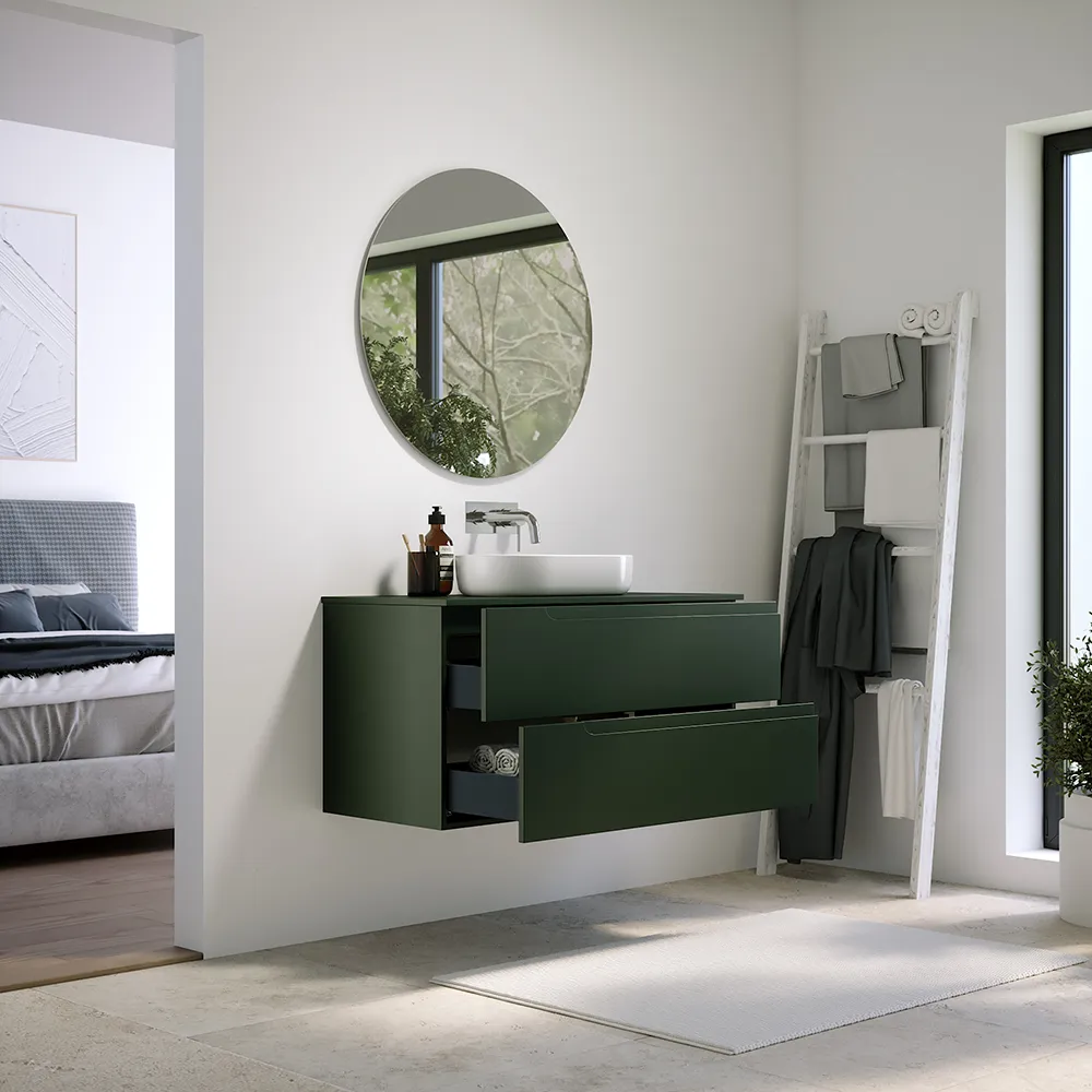 Mobile bagno sospeso 100 cm due cassetti verde foresta opaco con top | Ardenne
