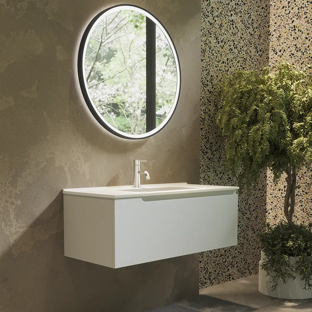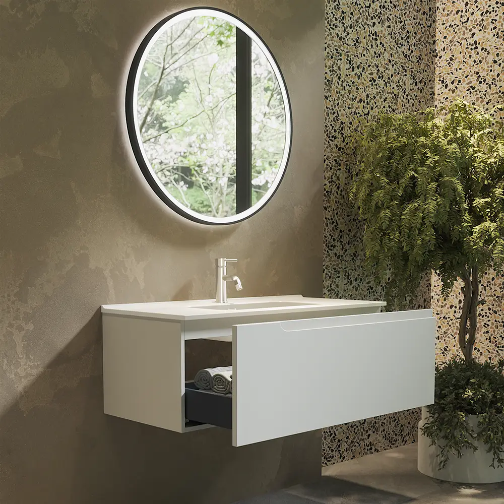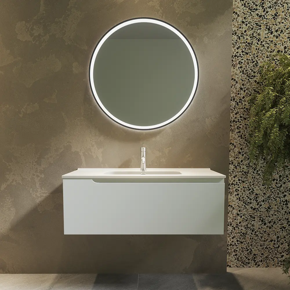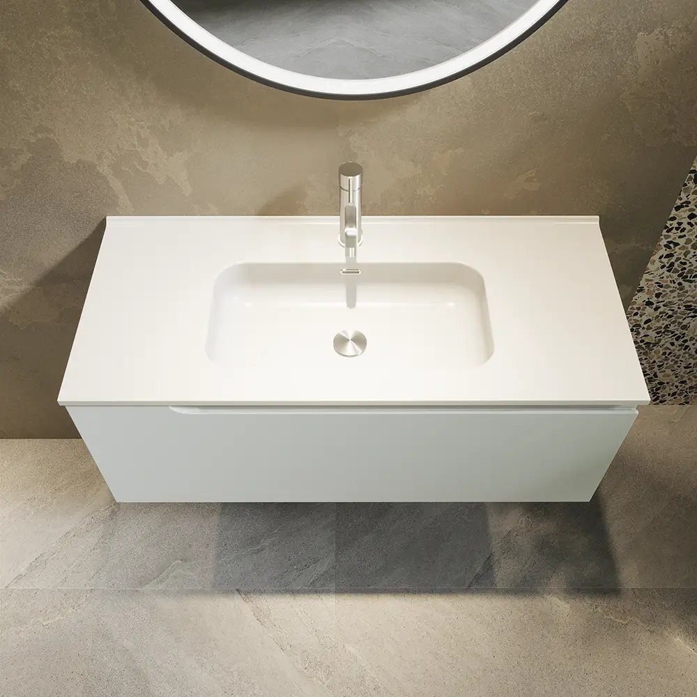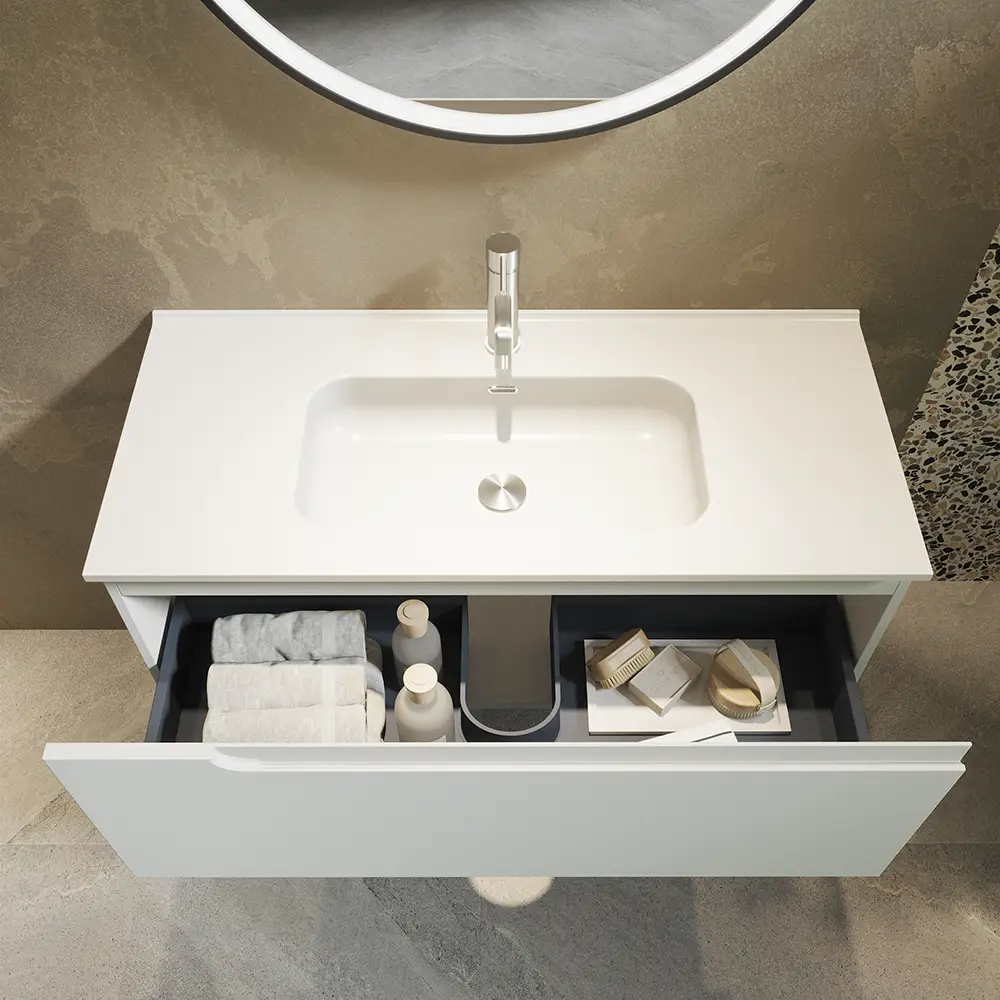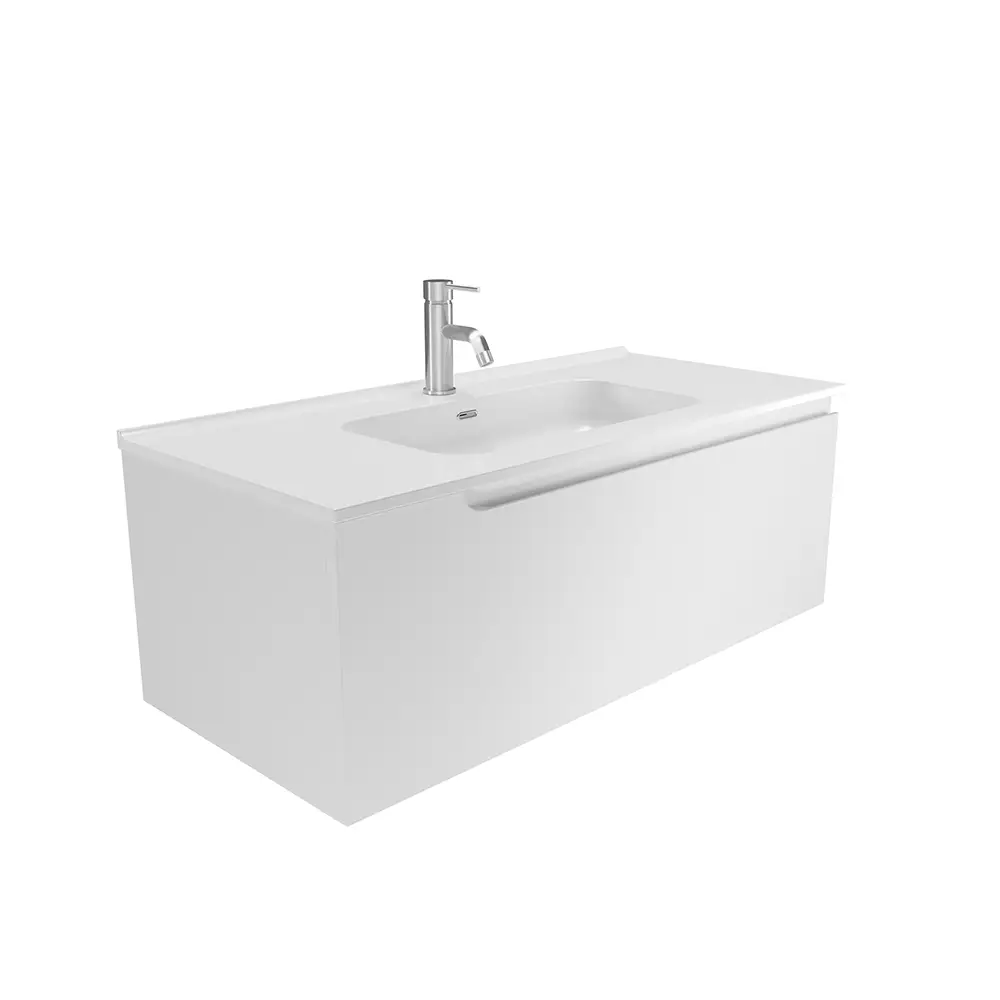 Mobile bagno sospeso 100 cm un cassetto bianco opaco con lavabo | Moor