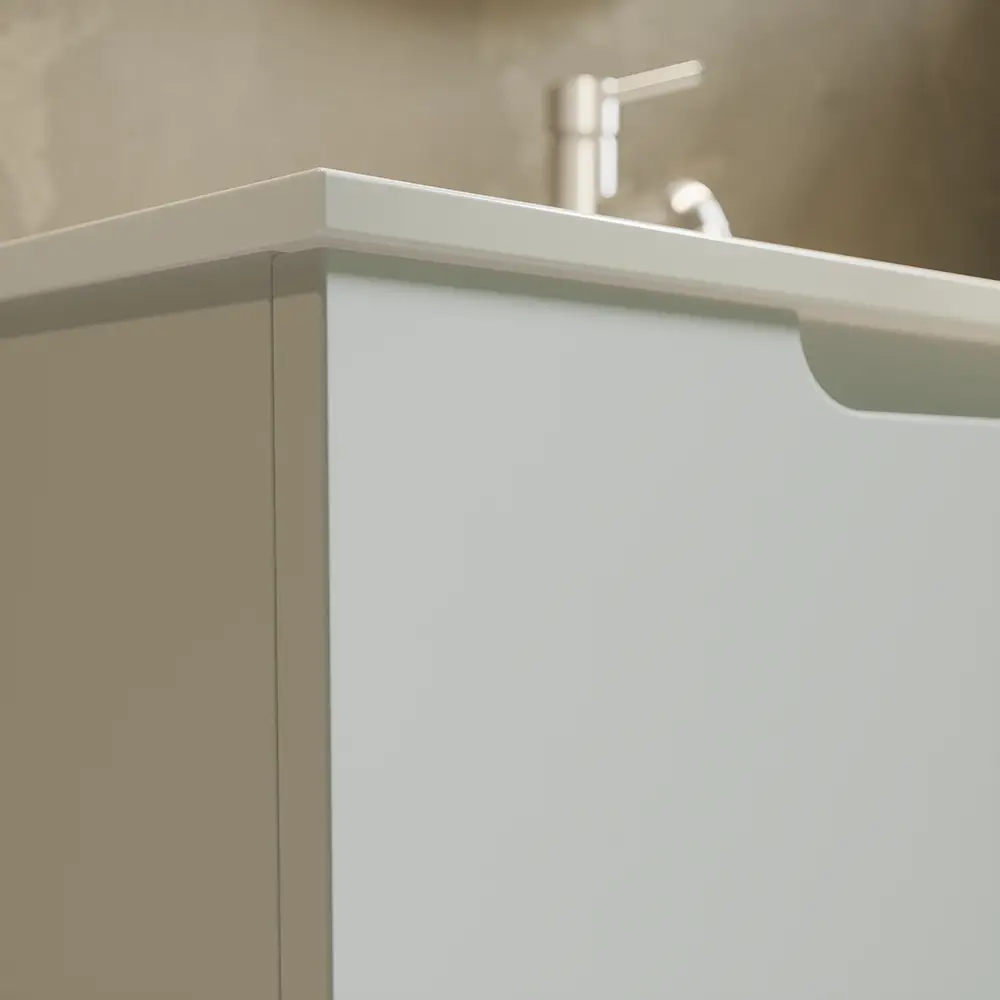 Il mobile dispone di un cassetto con la tecnologia soft close, il che significa che si chiude in modo delicato e silenzioso senza sbattere. Questa caratteristica non solo prolunga la durata del mobile, ma evita chiusure accidentali e per garantire un'esperienza d'uso sicura e confortevole.