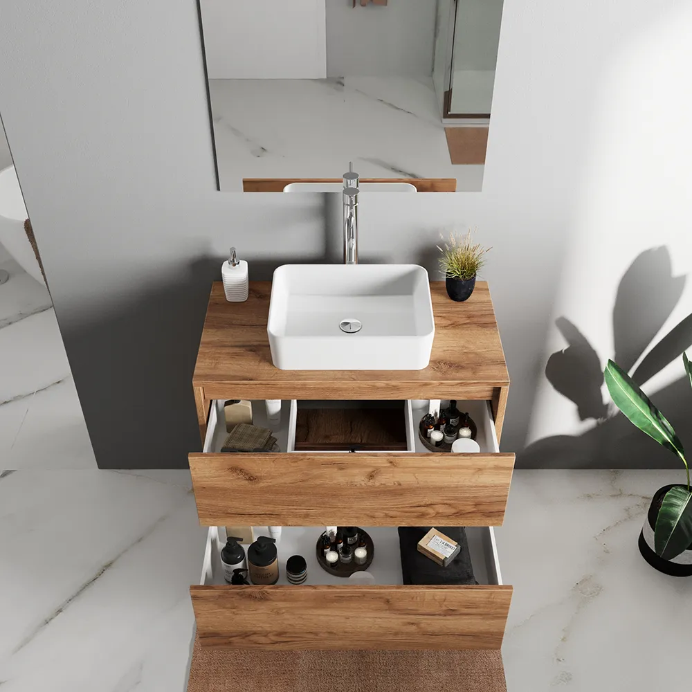 Mobile bagno sospeso 100cm due cassetti apertura push&pull rovere gransasso con top | Galdor
