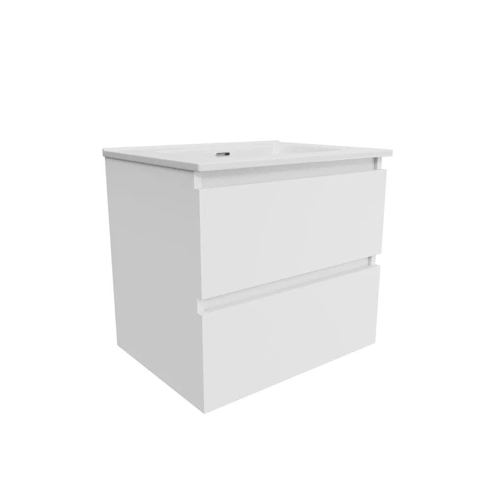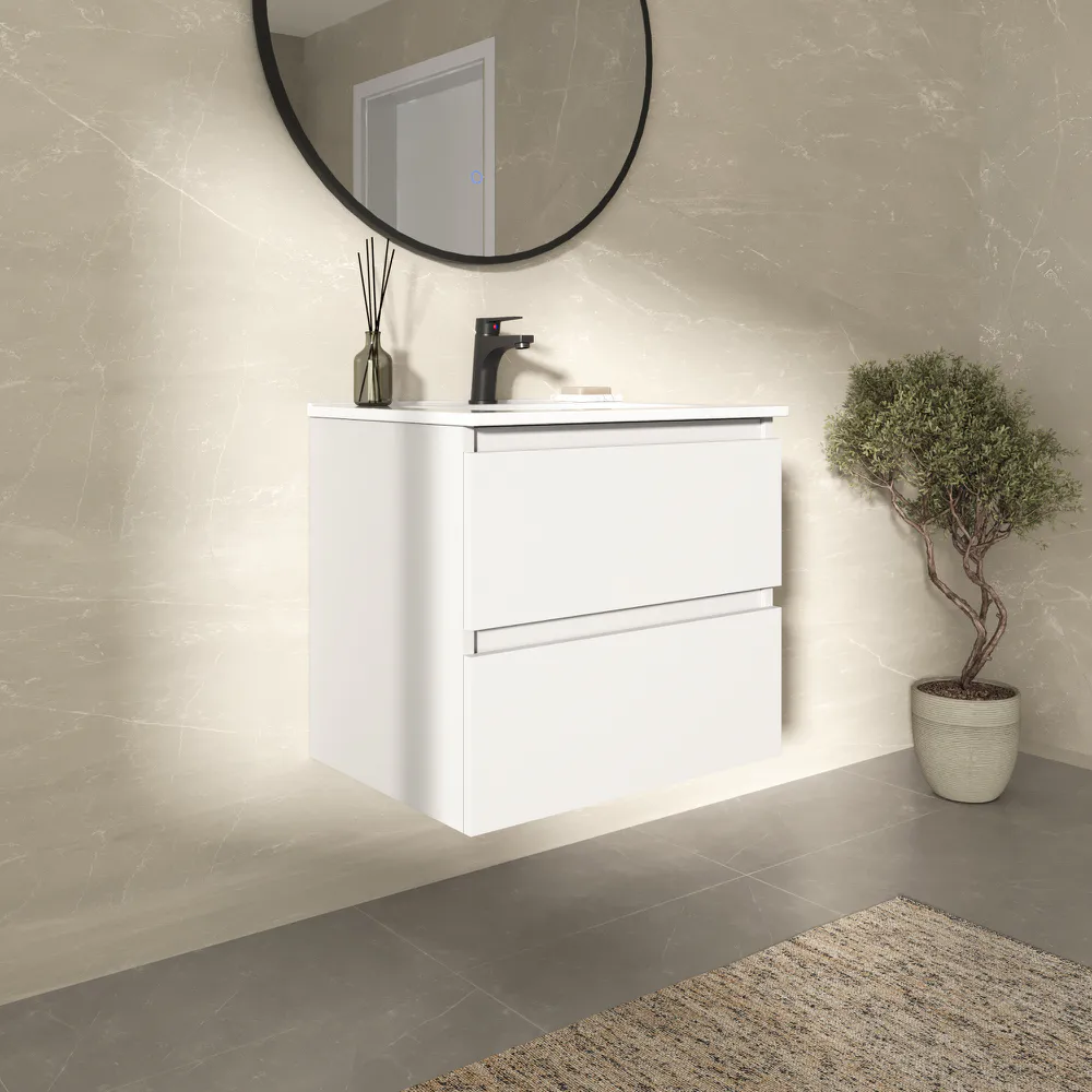 Mobile bagno sospeso 100cm due cassetti bianco opaco con lavabo | Hexa