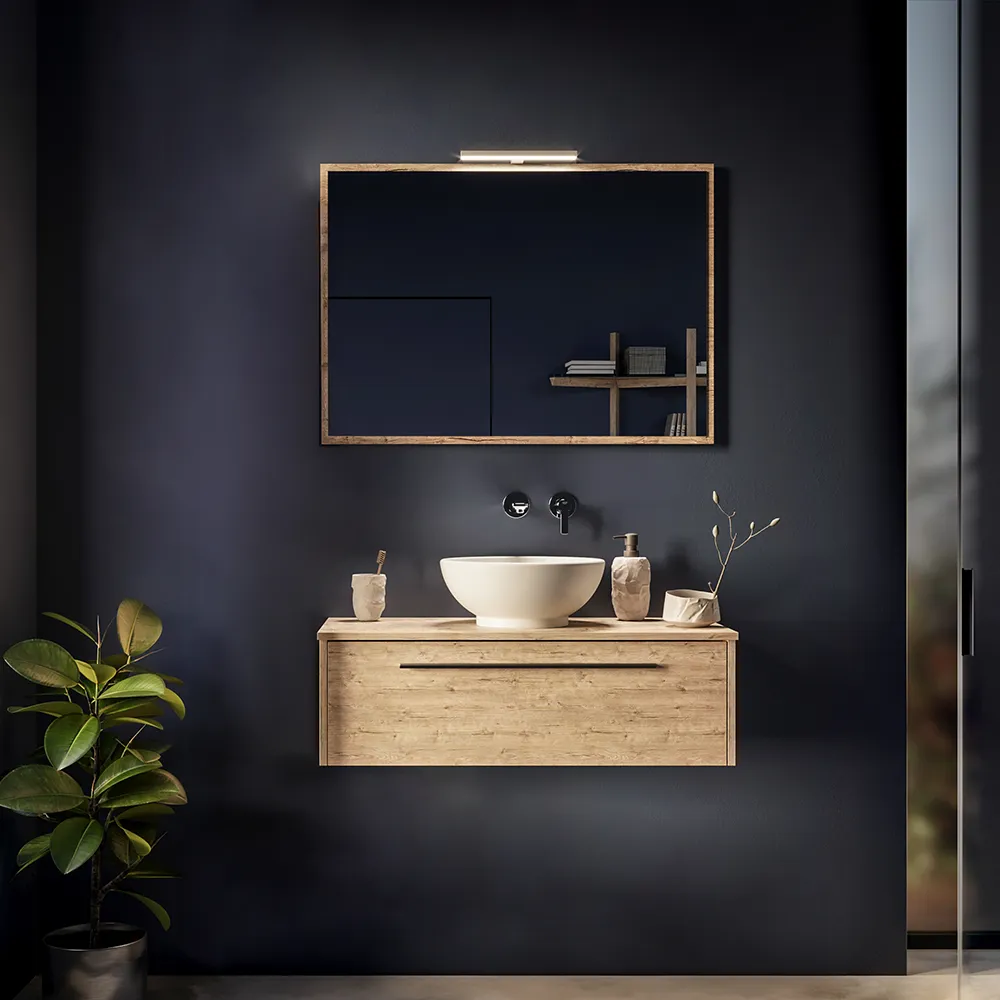 Mobile bagno sospeso 100cm rovere naturale un cassetto soft-close con top e specchio | Aoki
