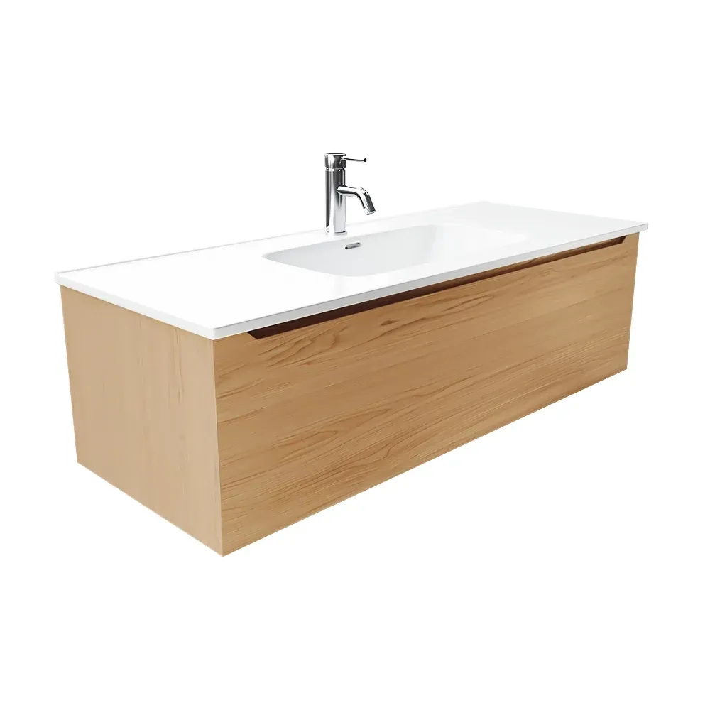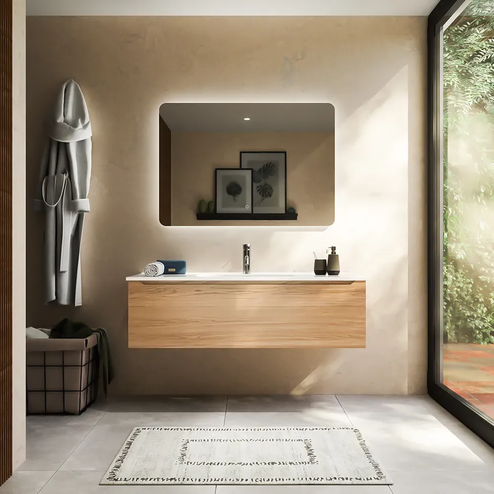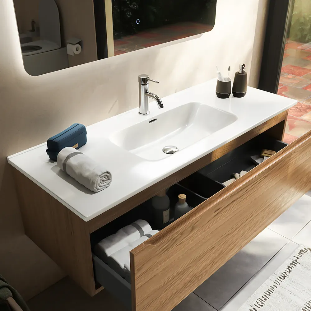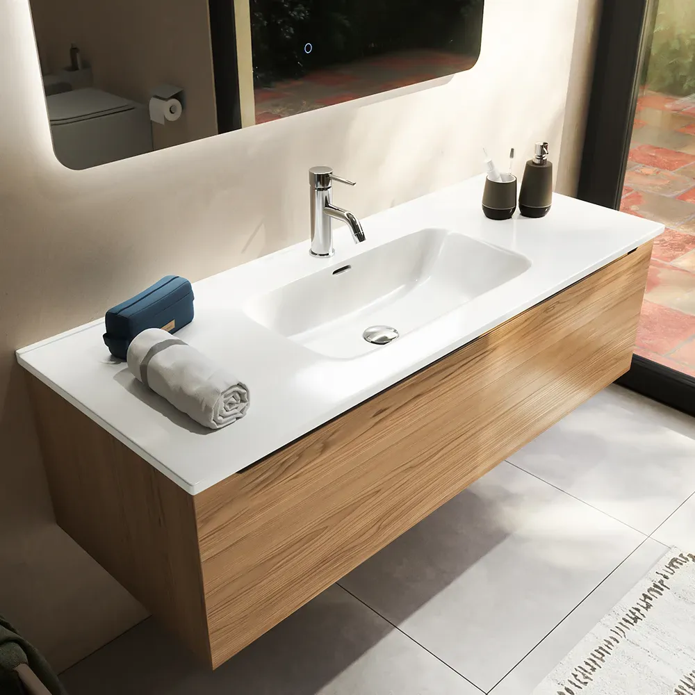 Mobile bagno sospeso 120 cm rovere chiaro un cassettone con lavabo | Bako