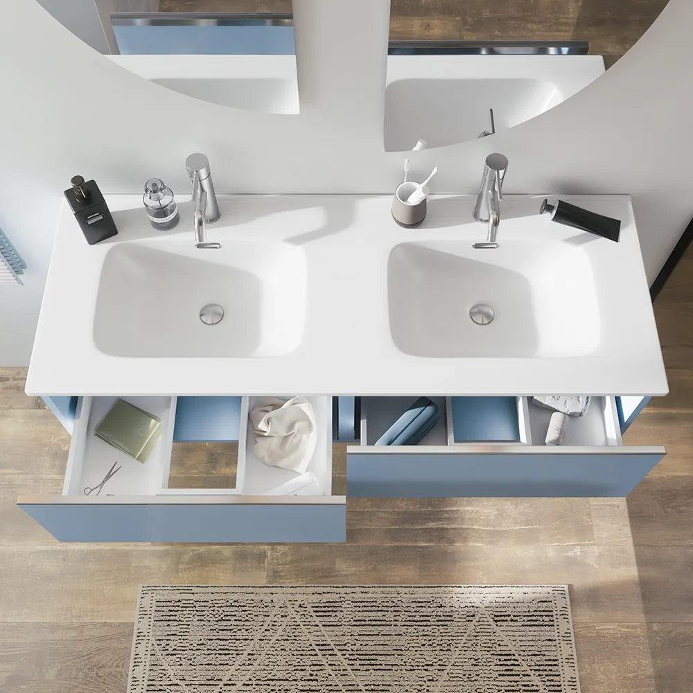 Mobile bagno sospeso 120cm con lavabo doppia vasca in ceramica blu pastello opaco | Darwin