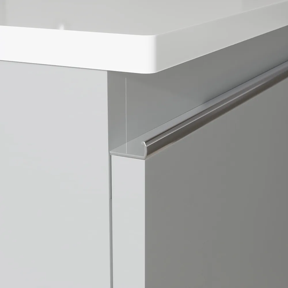 Il mobile è dotato di due cassettoni spaziosi con chiusura rallentata, perfetti per organizzare in modo pratico e ordinato tutti i tuoi prodotti per l'igiene personale. Il meccanismo di chiusura ammortizzata garantisce un utilizzo silenzioso e fluido, mentre il design lineare delle maniglie in metallo assicura una presa comoda e sicura.