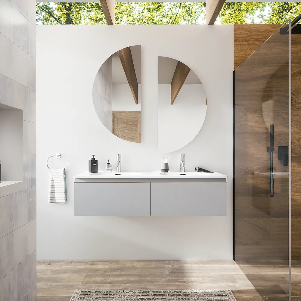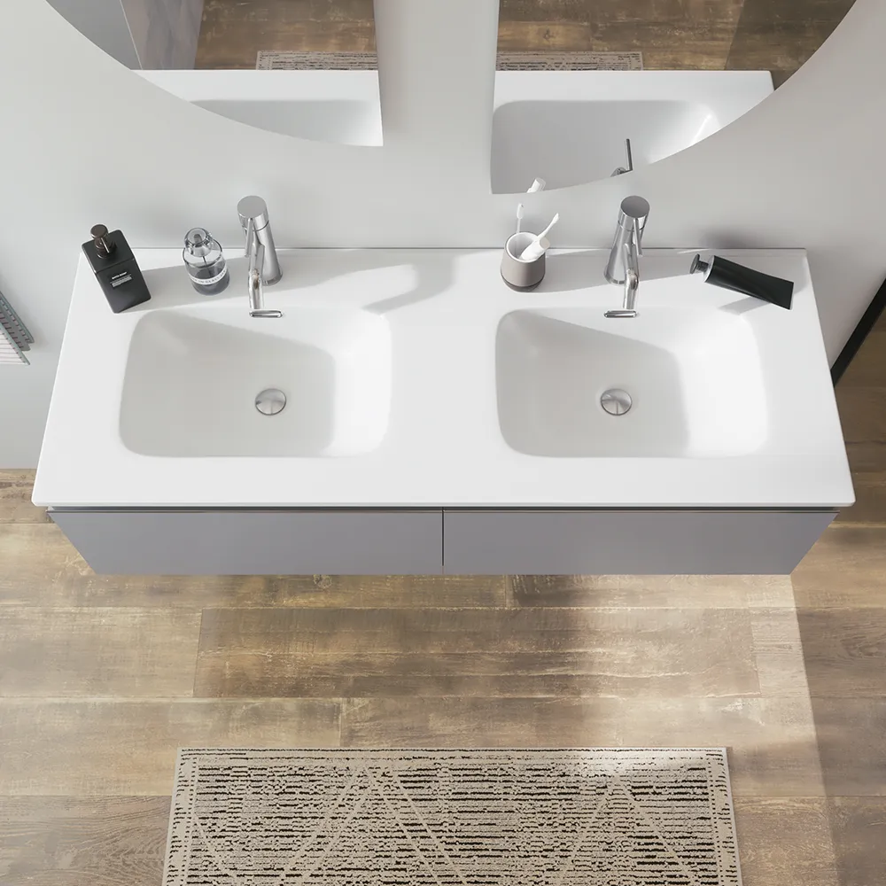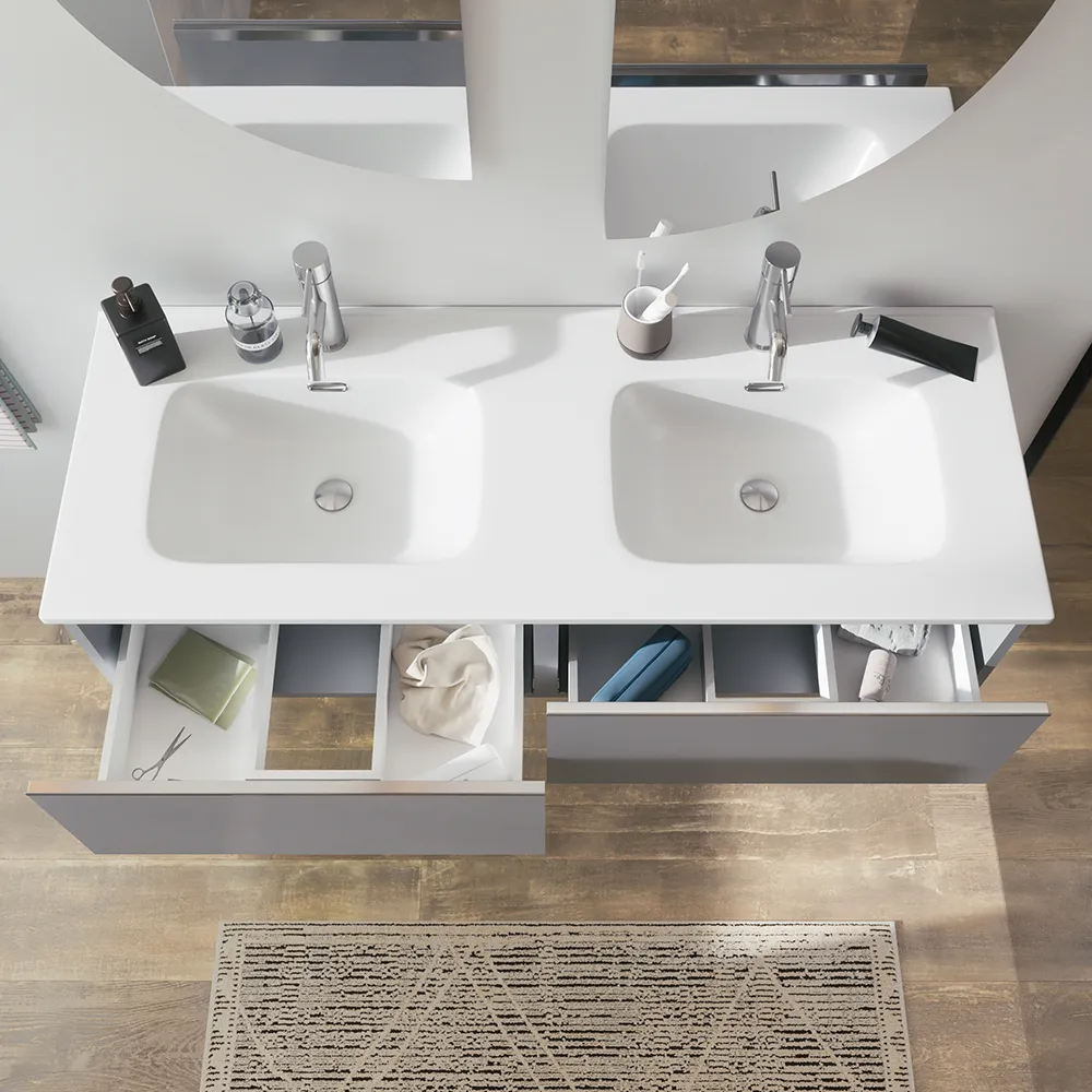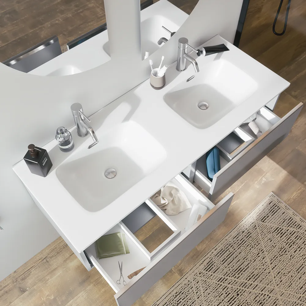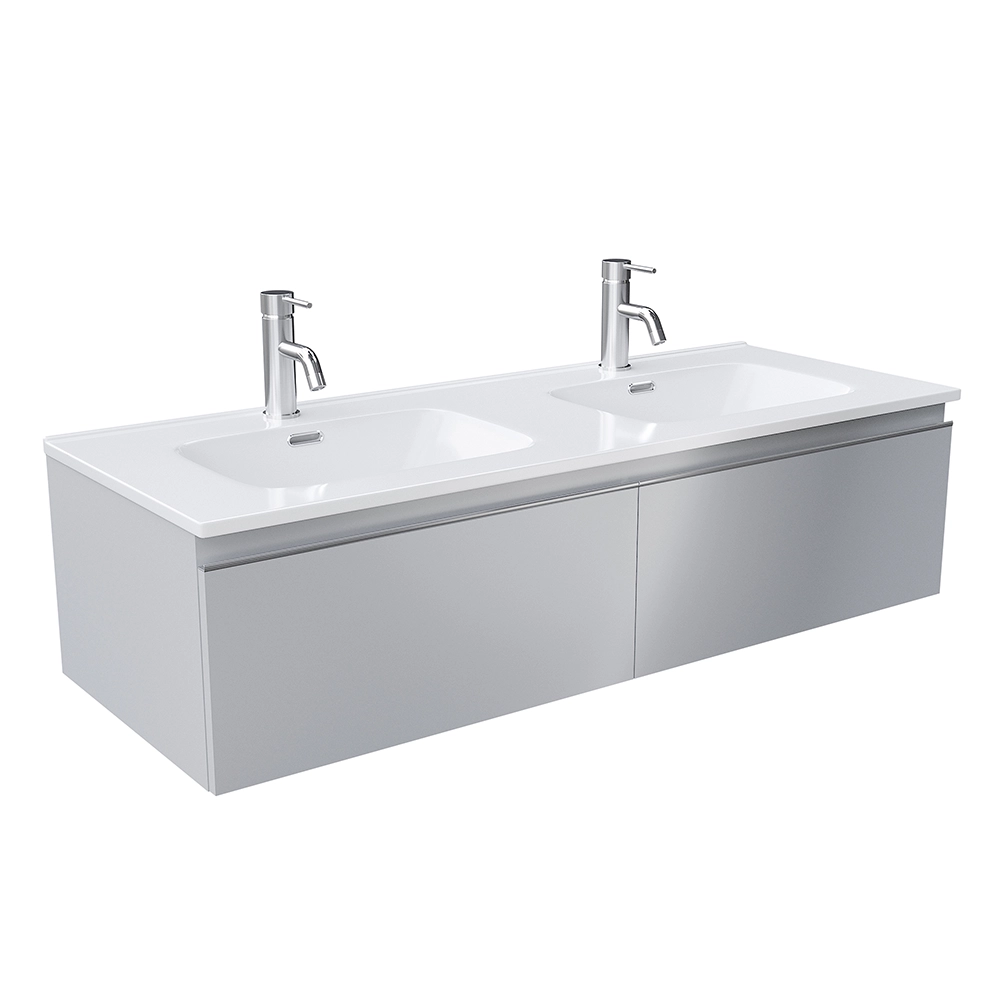 Mobile bagno sospeso 120cm con lavabo doppia vasca in ceramica grigio perla opaco | Darwin