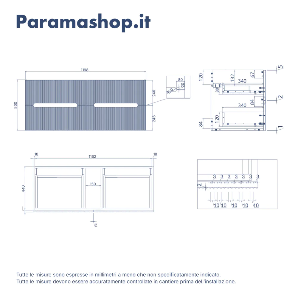 Il corpo del mobile è realizzato in robusto MDF, progettato per durare nel tempo e resistere all’uso quotidiano. Il top, invece, è realizzato in legno compensato, garantendo la massima resistenza e stabilità anche sotto il peso di un lavabo da appoggio, senza rischio di deformazioni.