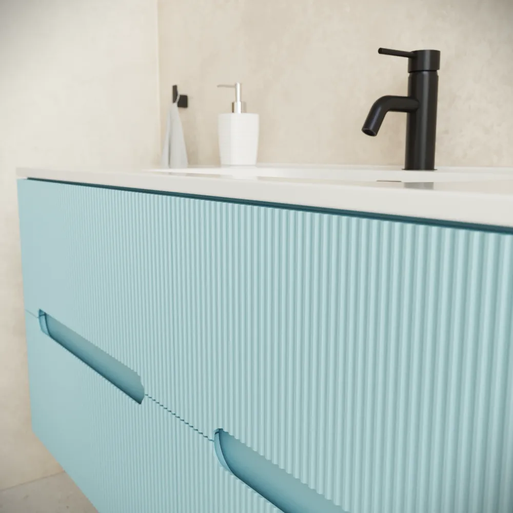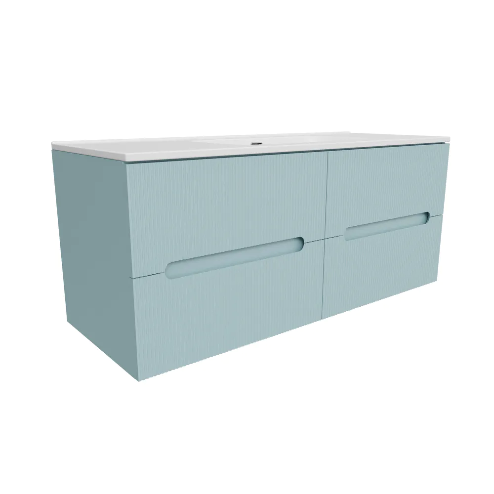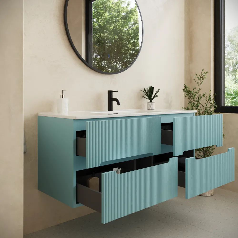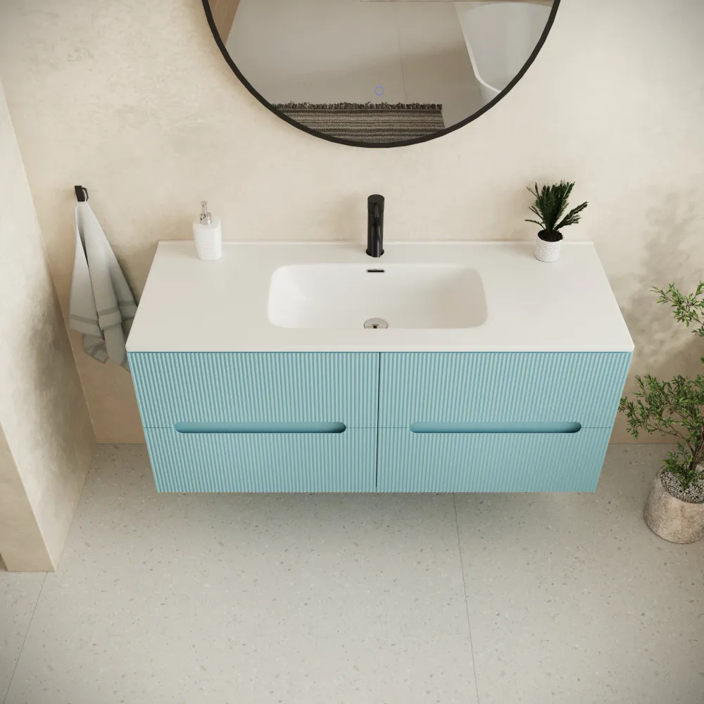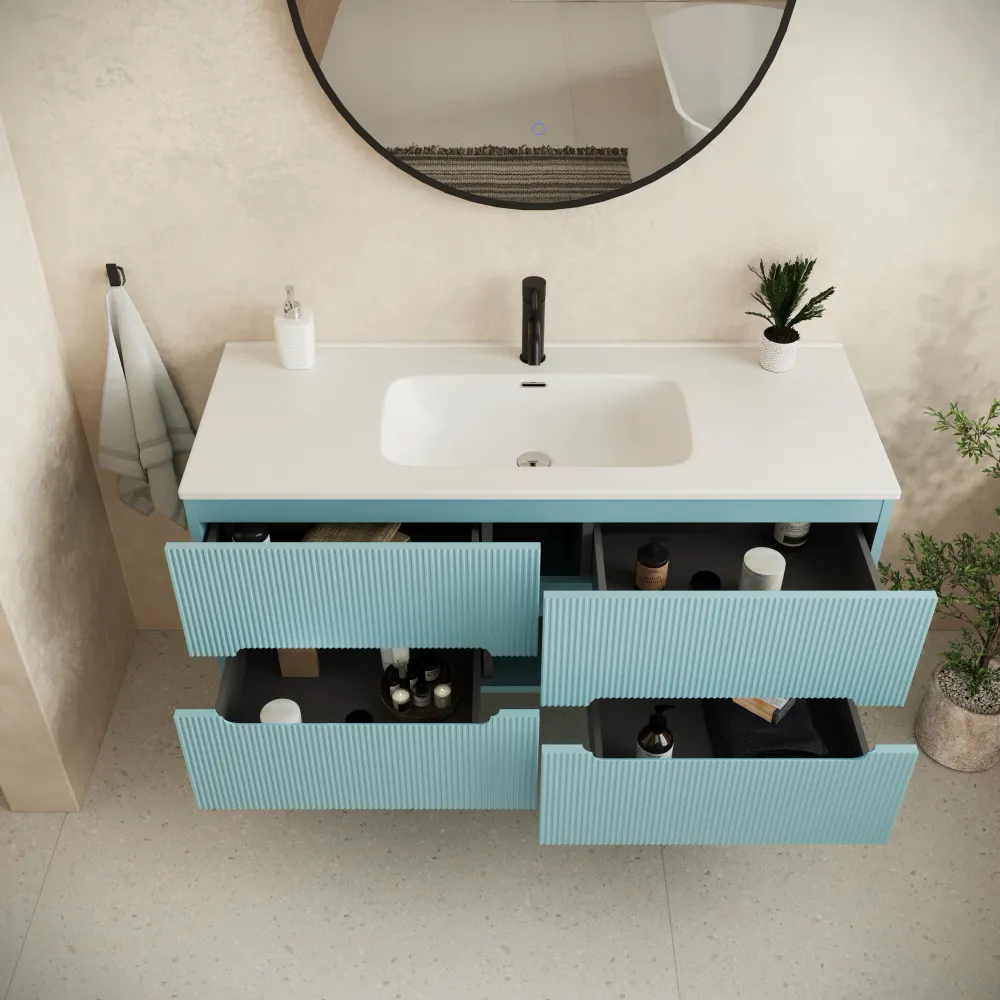 Mobile bagno sospeso 120cm quattro cassetti carta da zucchero cannettato con lavabo bianco lucido | Tigua