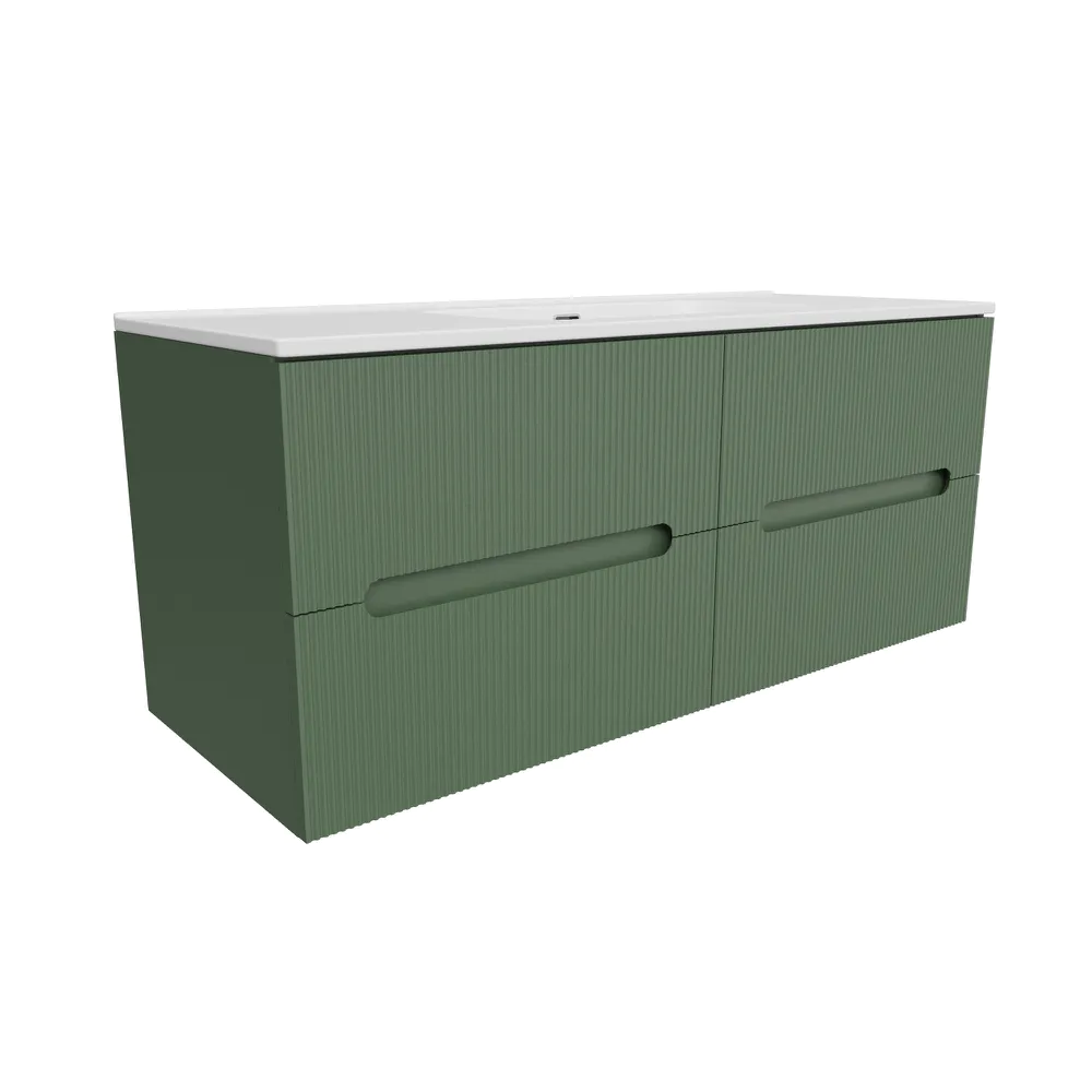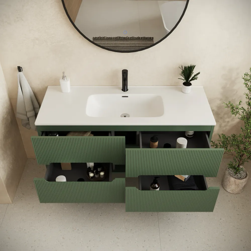 Mobile bagno sospeso 120cm quattro cassetti verde foresta cannettato con lavabo | Tigua
