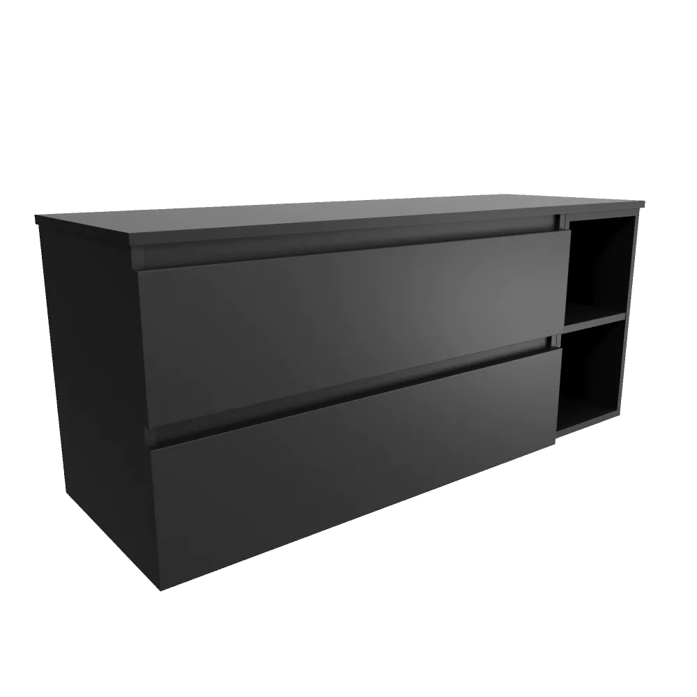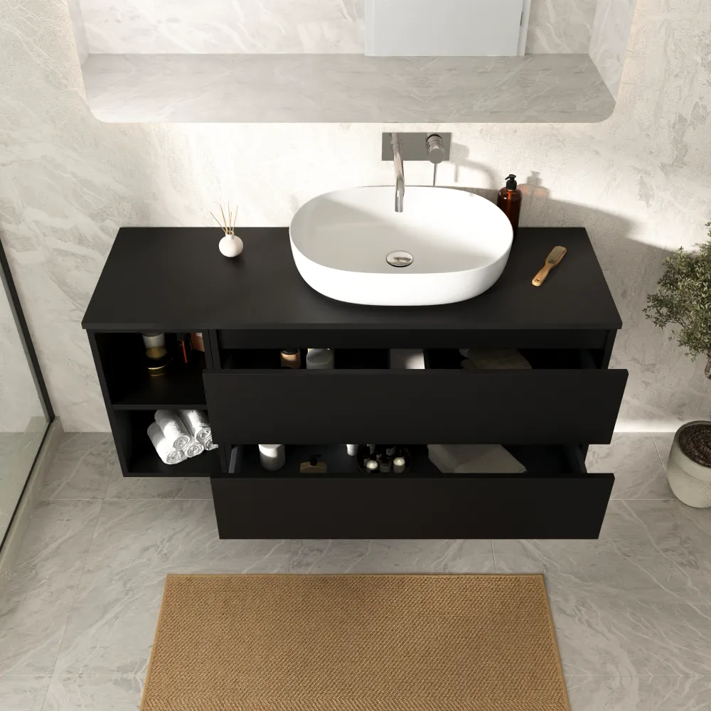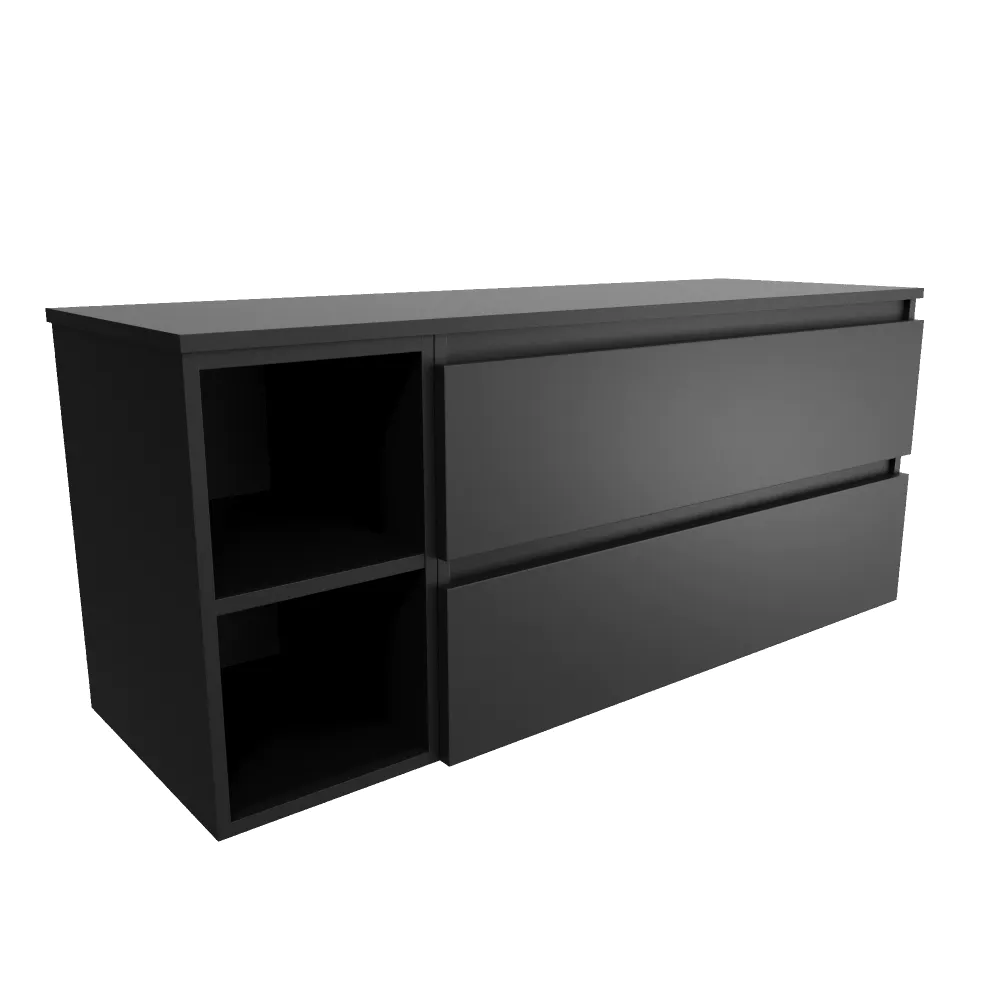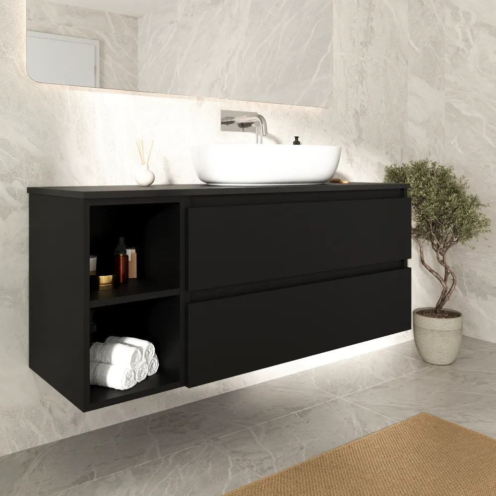 Mobile bagno sospeso 130cm due cassetti nero opaco con top e vano a giorno | Hexa