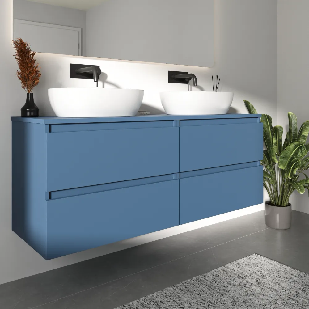 Mobile bagno sospeso 140cm due cassetti alby blue con top | Hexa
