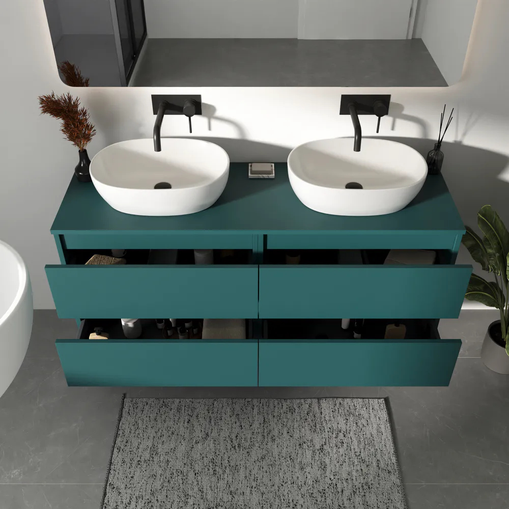 Mobile bagno sospeso 140cm due cassetti petrol con top | Hexa